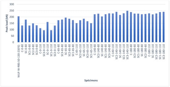 Another observation is that increasing the opening size from 80 mm to 110 mm improved the strength in several configurations (Figure 28). Among them, the semi-circular SC3 arrangement consistently gave the best performance, showing the highest load values at both L = 140 mm and L = 180 mm.