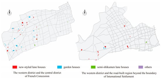 Statistical analysis of the collected 52 cases revealed the predominance of three primary architectural types: new-styled lane houses, garden houses, and semi-shikumen lane houses. These accounted for 50%, 30.7%, and 15.4% of the cases, respectively.