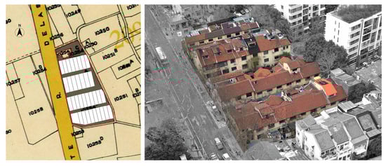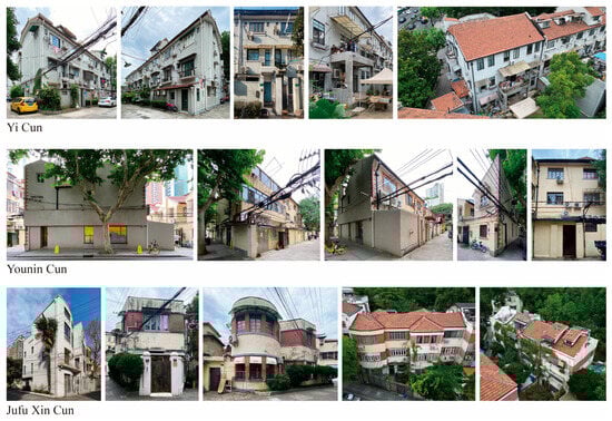 The new-styled lane houses constituted the predominant architectural type within the surveyed cases. Emerging in 1920s Shanghai, new-styled lane houses retained the row-upon-row layout of typical shikumen lane houses but significantly widened roads to accommodate vehicles. Typically rising two to three storeys, these houses employed hybrid brick-concrete-timber structures or brick-concrete structures. Moreover, residential units replaced high protective courtyard walls with low enclosures or railings. Entrance gates were scaled down in size and diversified in form, while interior amenities prioritized modern comfort with features such as private bathrooms and heating systems. For instance, the property named Yi Cun employed this architectural type (Figure 6), which was developed in 1938 by the real estate developer through collecting prepayments from tenants via newspaper advertisements for its construction [].
