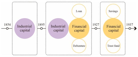 However, from 1854 to 1894, financial capital had not yet significantly penetrated the real estate market. Foreign banks operating prior to 1892 focused primarily on commercial exchange and remittance services []. Similarly, loans extended by early modern Chinese native banks between 1860 and 1894 were predominantly directed toward financing trade []. Consequently, land development during this period was undertaken primarily using industrial capital.