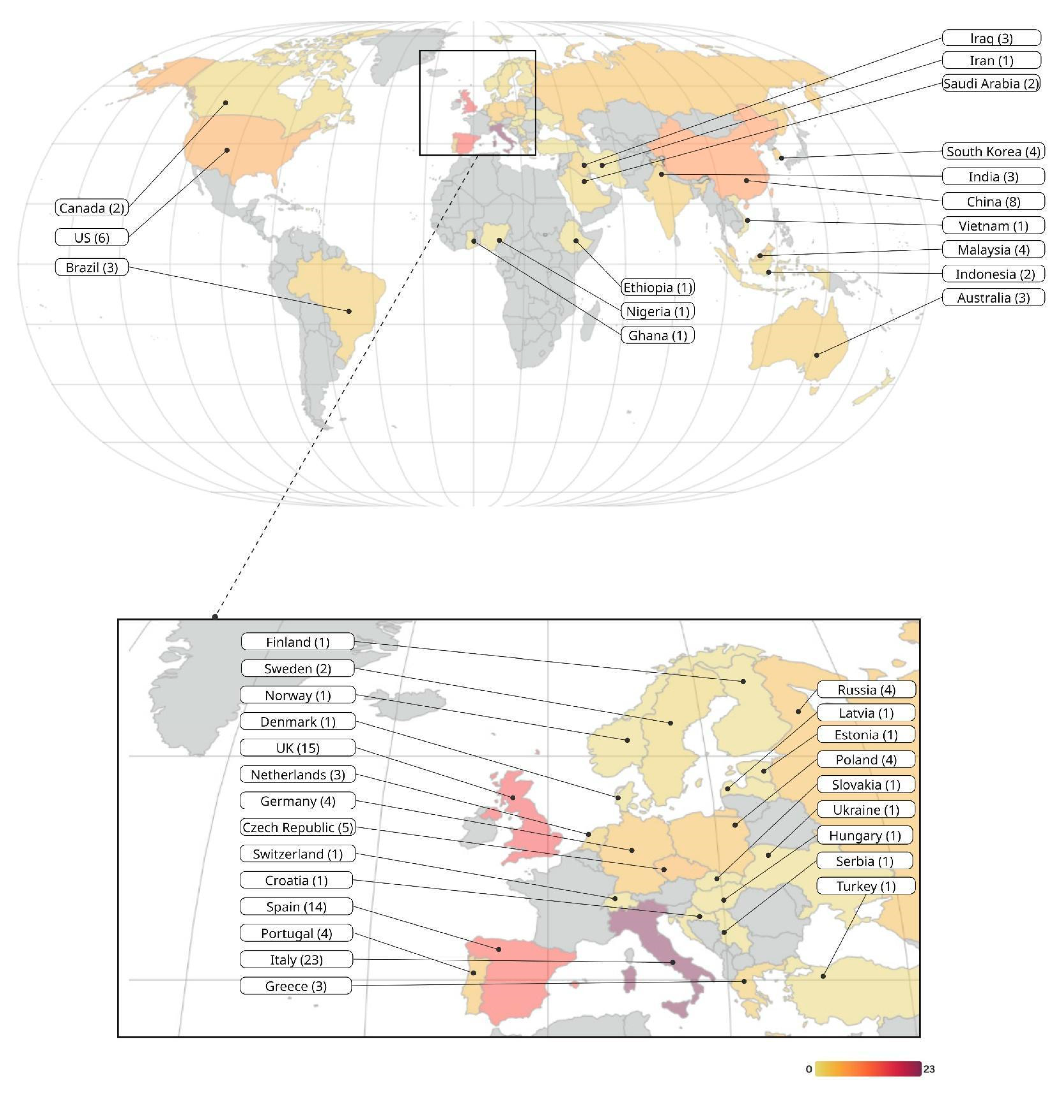 2.6. Geographical Distribution of the Analysed Articles
