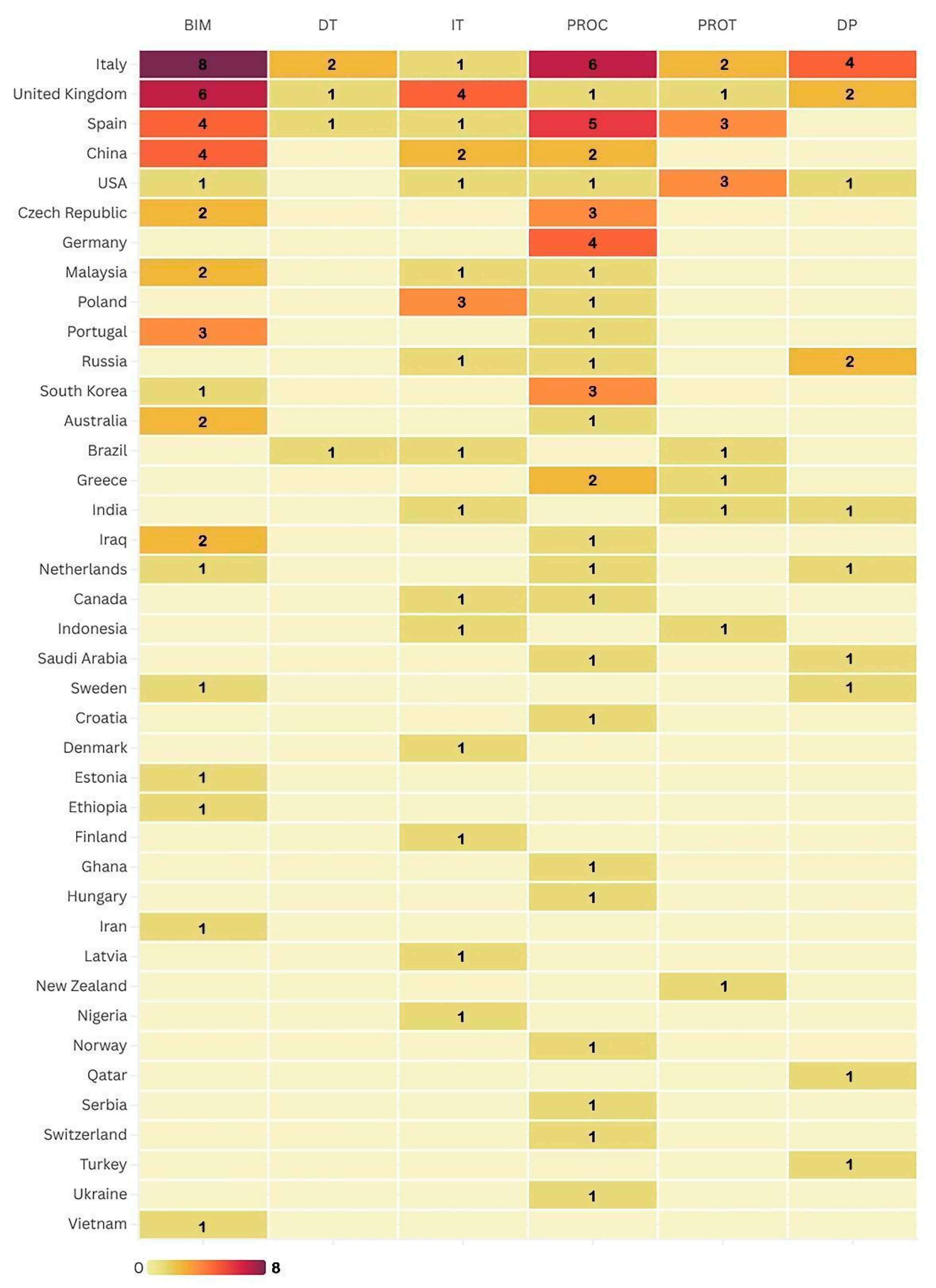 - Procedures and protocols for digitalisation: This category examines the regulatory standards and guidelines adopted in various countries to govern the use of digital technologies within PA and the construction sector. The analysis focuses on best practices implemented in the digitalisation of public procurement processes and the regulatory instruments aimed at ensuring the security and transparency of procedures. Particular attention is given to standardisation policies and interoperability protocols that enable the integration of new technologies into construction and administrative processes.