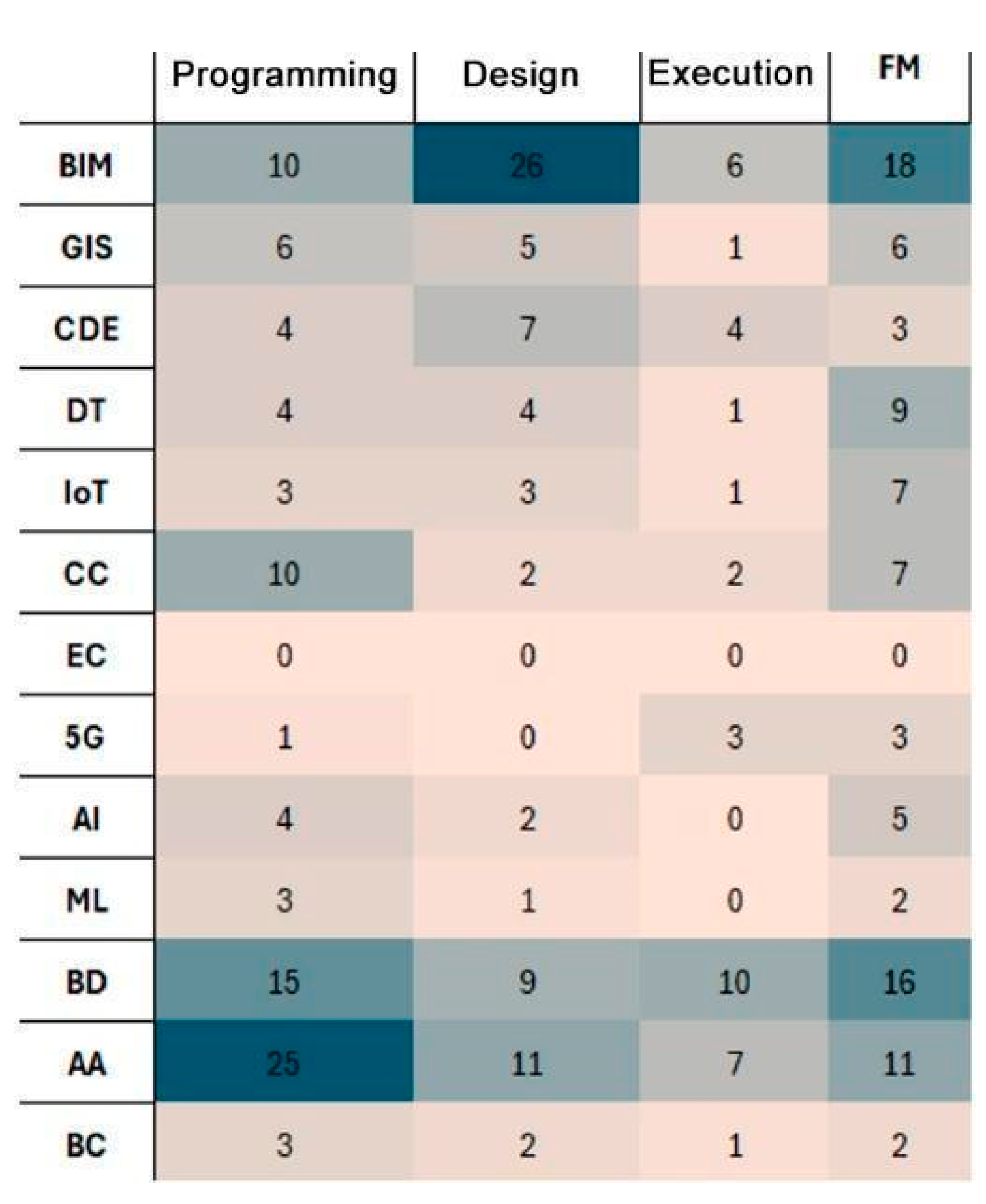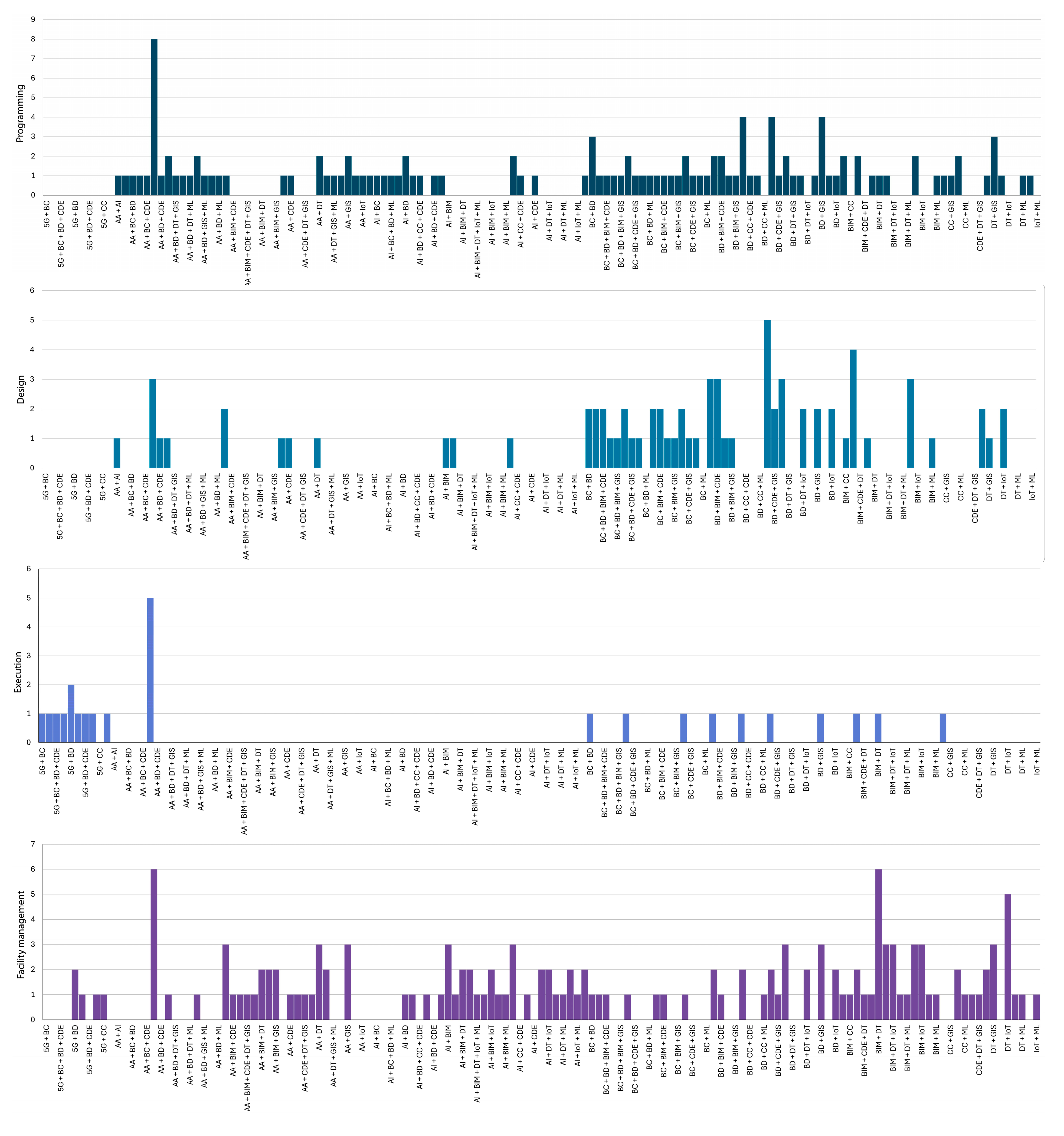 - AA + BD (+ GIS/ML): dominant in Programming, supporting predictive analytics;