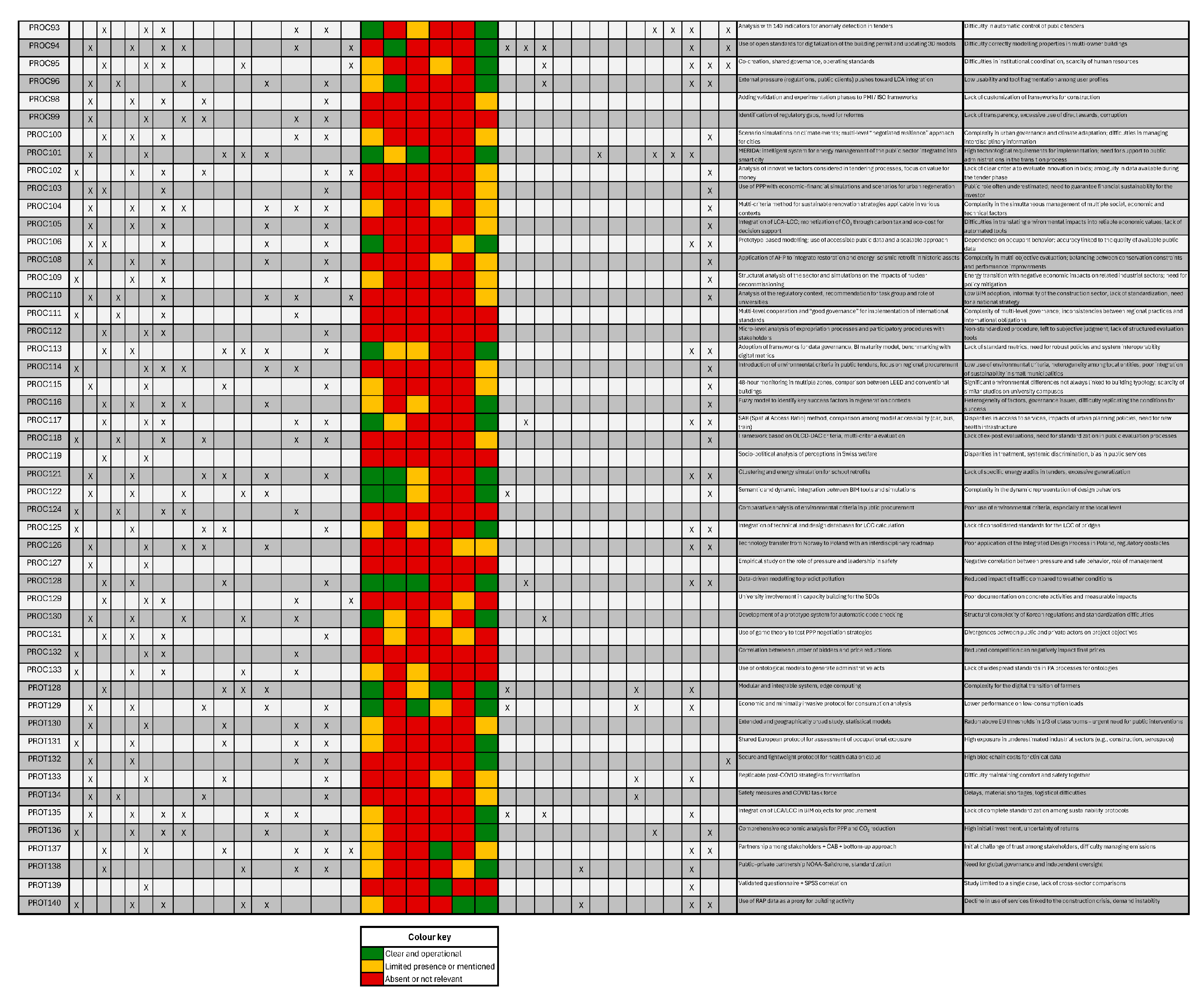 - Red—absent or not relevant: there is no significant reference to the technology, or it is not pertinent to the content discussed.
