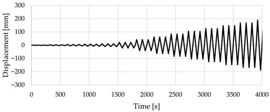 The cyclic displacement protocol was designed with incremental displacements applied at the top of the walls, using three cycles per increment, up to a maximum displacement corresponding to a 6.0% drift relative to the height of the bahareque wall. Figure 4 presents the final protocol for all specimens, which was terminated once failure occurred. Similar protocols can be found in references such as [22].