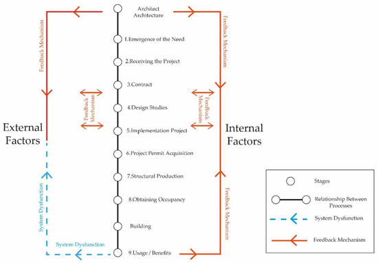 To address these deficiencies, the proposed “Building Anatomy” model reimagines architectural production as a living organism shaped by the dynamic interplay of interdependent internal and external forces. Feedback loops are central to this model, ensuring continuity, adaptability, and responsiveness throughout the phases of the process. In this reconceptualization, the architect is not just a designer but also a system manager, who continuously negotiates between competing variables across the lifecycle of a project [38,39].