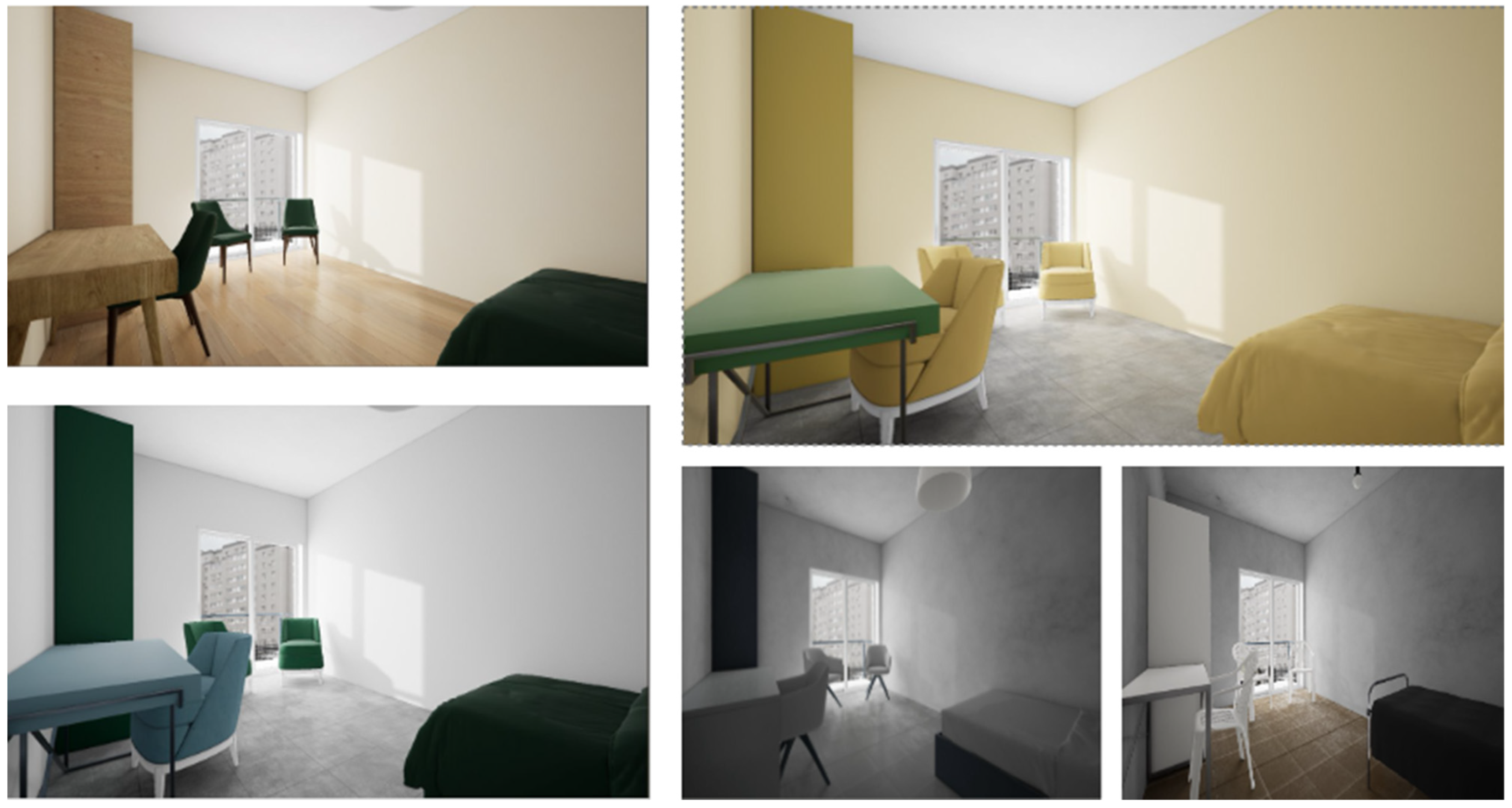 - Enwin, A.D.; Ikiriko, T.D.; Jonathan-Ihua, G.O. The role of colours in interior design of liveable spaces. Eur. J. Theor. Appl. Sci. 2023, 1, 242–262. [Google Scholar] [CrossRef] [PubMed]