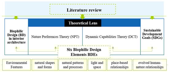 This paper explores the connection between BD, which is associated with BDEs, and its impact on the experience of guests and operational efficiency in rooftop hotel restaurants with BDEs, as well as its influence on the guest experience and operational efficiency in rooftop hotel restaurants within the hotel industry []. It uses two theoretical perspectives, namely, NPT, which emphasises the restorative project advantages of natural systems on guests, and DCT [], which promotes the capacity of the hospitality industry to embrace changing design requisites and clientele demands []. In combination, NPT and DCT create a holistic system for planning how biophilic interior design could achieve both functional and aesthetic objectives [] as well as how it could contribute to personal well-being and be in balance with the Sustainable Development Goals (SDGs).