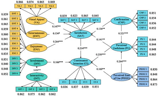 H12: The result confirms that satisfaction has a significant impact on continuance intention (β = 0.214,