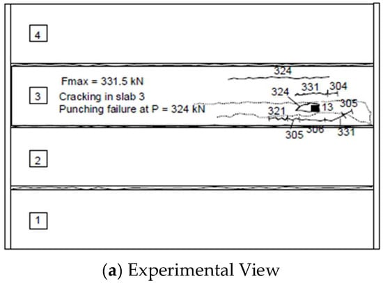 Figure 13a, which aligns with the findings of other studies regarding the formation of wide longitudinal cracks under the load on the top surface of the slab.