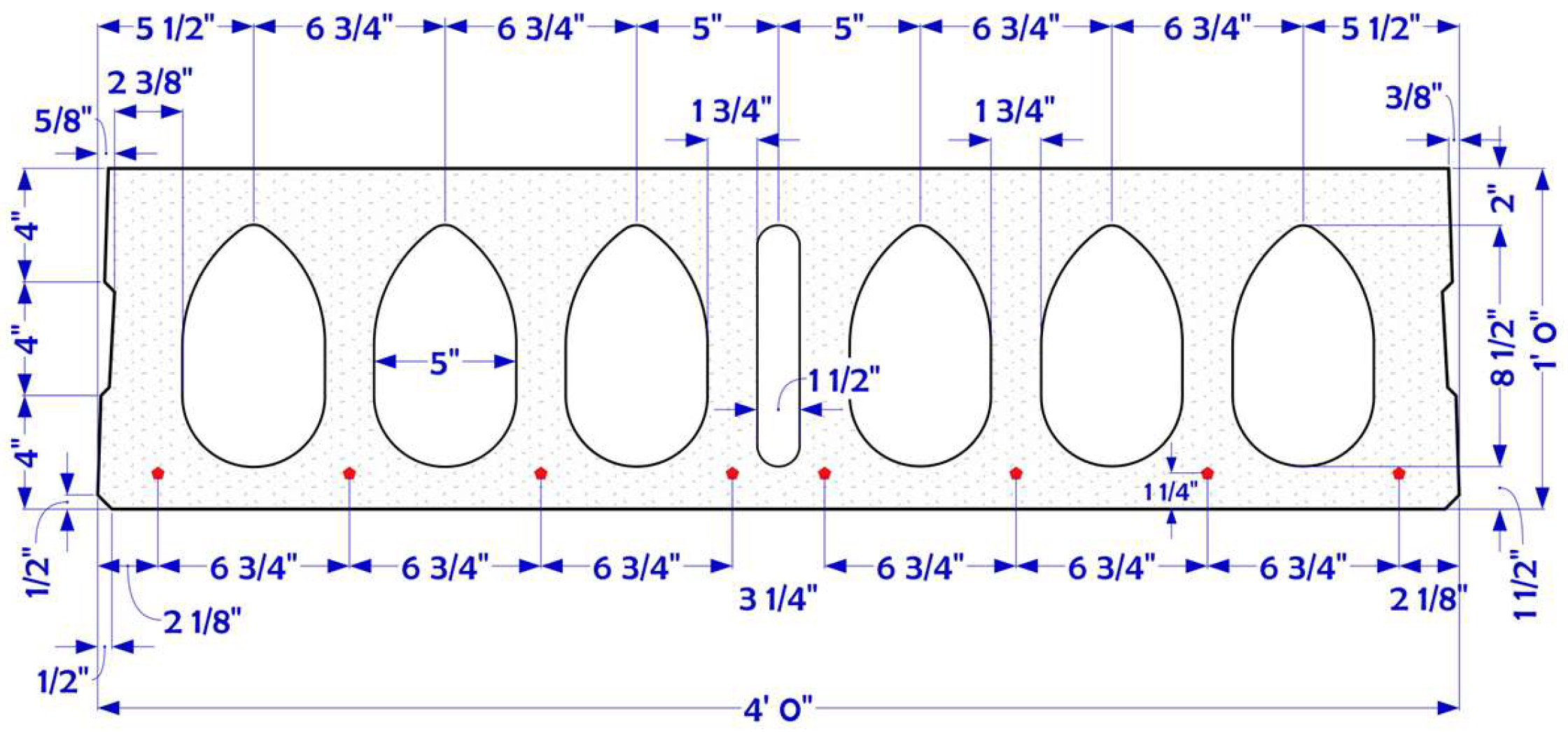 Precast, prestressed, Hollow Core Slabs (HCSs) have become a popular choice for floor and roof systems in many modern multi-story buildings due to their durability, resilience, economy, and ease of placement. The design of HCSs includes continuous voids, separated by thin webs, running longitudinally through the slabs, effectively reducing the weight of the structure without compromising its strength compared to solid concrete slabs. There are three basic geometries commonly used for HCSs with (1) the oldest one featuring circular cores, (2) another one featuring closely spaced openings with an oval shape that is topped by a peaked crown (such as the Spancrete system), and (3) a newer system featuring wider, rectangular shaped cores with radiused corners (such as the Elematic system). While most common in the US, the Spancrete system has also been introduced to other countries through Spancrete Global Services. Being prefabricated off-site, they can be quickly and efficiently installed on-site, significantly reducing construction time and labor costs. HCS units are integrated with longitudinal prestressing strands which effectively delay cracking. As a result, service loads are primarily supported by uncracked concrete [1].