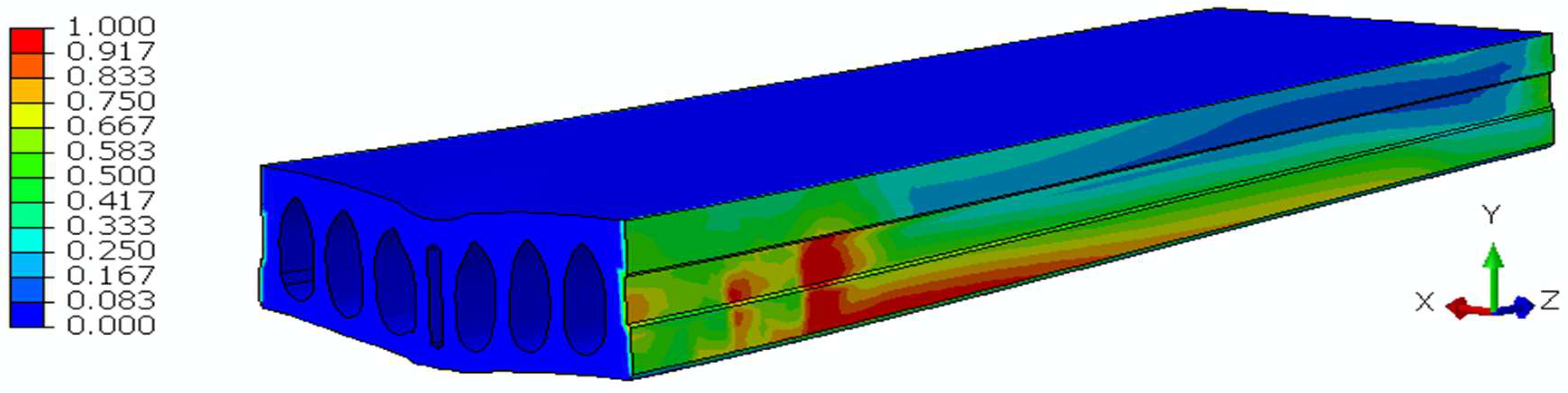 Figure 21. Hinge-joint damage criterion at the final load stage.