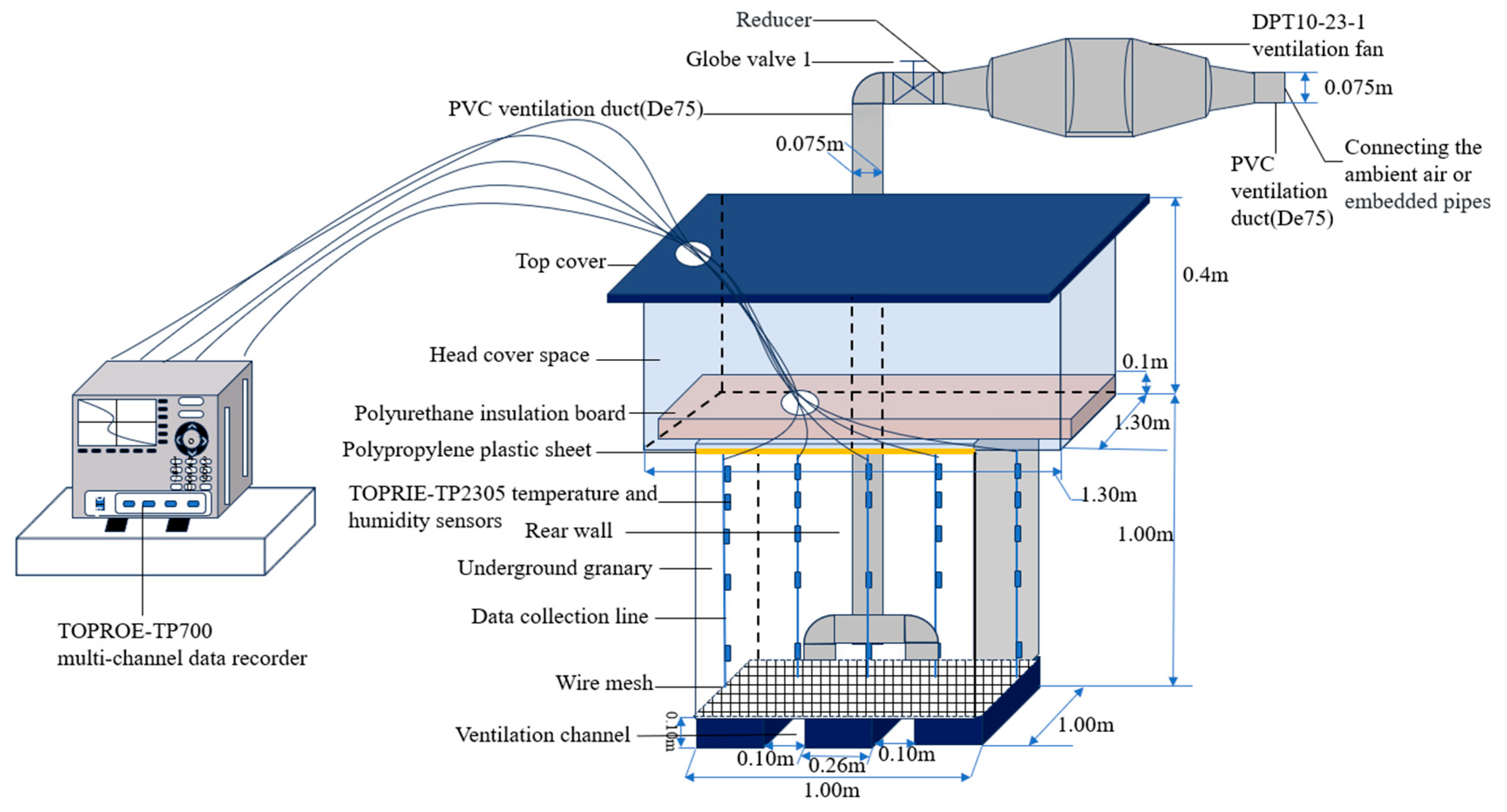 Chen, X.; Li, Y.; Jiang, S.; Yang, L.; Liu, Y.; Gao, Y.; Zhang, H. Experimental Comparison of Ventilation Strategies for Condensation Risk in Underground Wheat Granaries. Buildings 2025, 15, 3483. https://doi.org/10.3390/buildings15193483