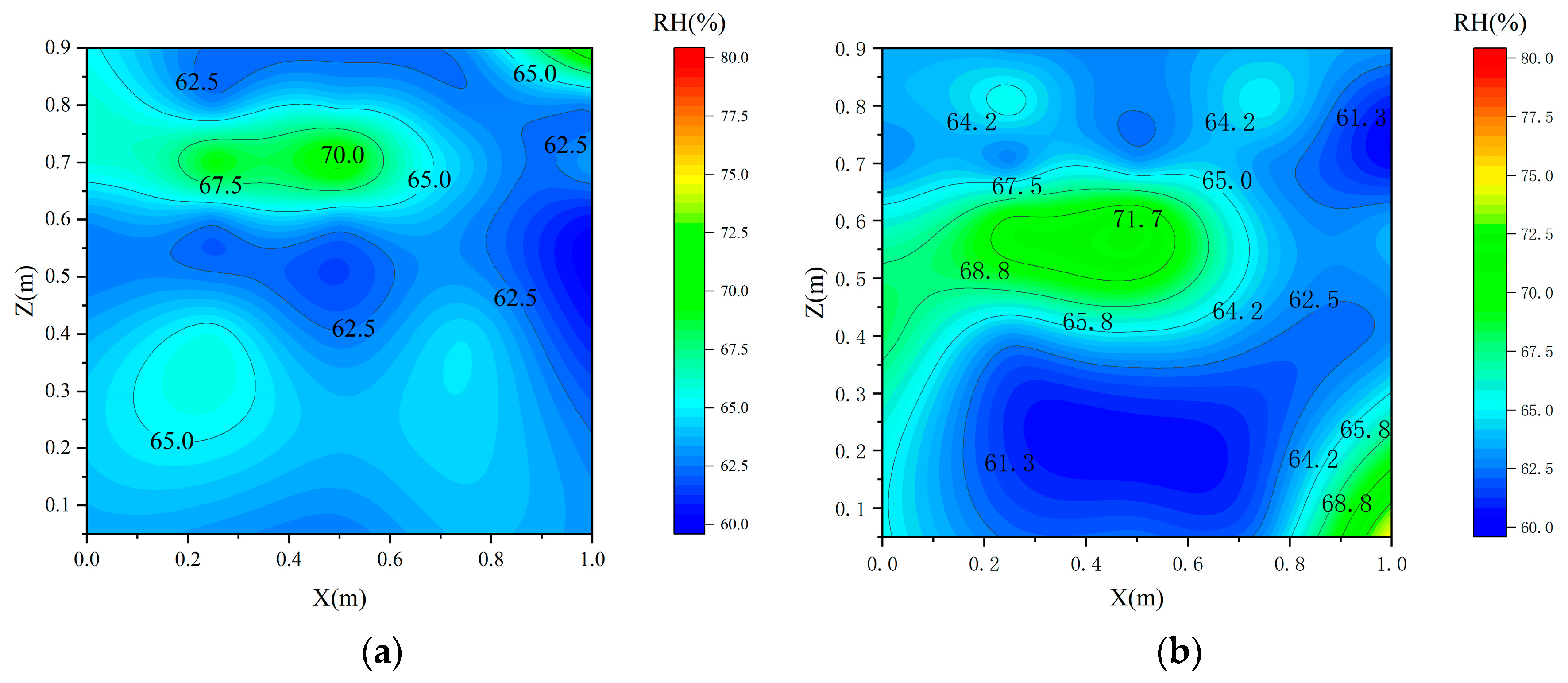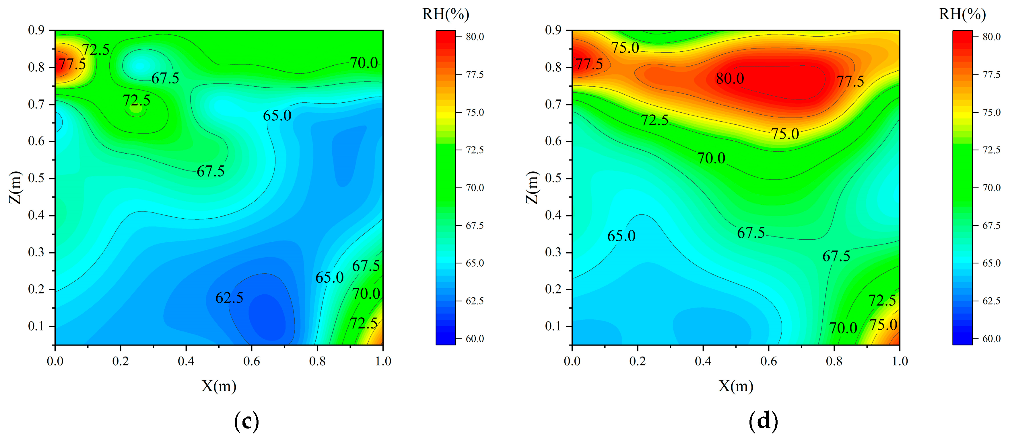 - Mechanical ventilation effectively reduced relative humidity but was susceptible to fluctuations in ambient air temperature, thereby influencing the internal temperature distribution and the effectiveness of condensation control.