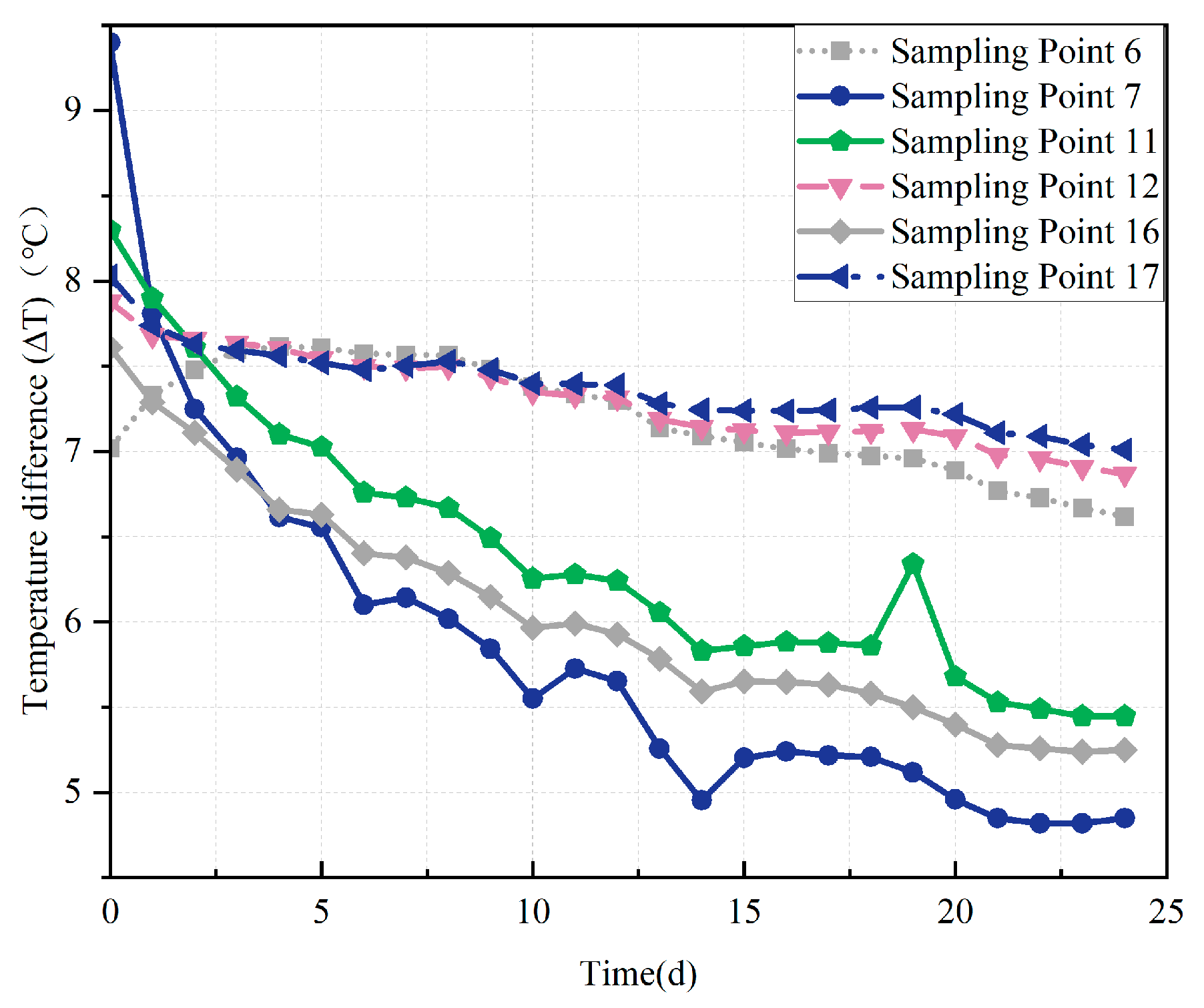 3 | Ventilation pretreatment | 8 h | 3 d | 3.3 m3/min | Utilization of conventional ventilation equipment with ambient air pre-cooled via the embedded pipe system |