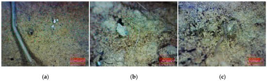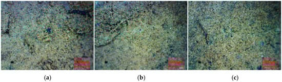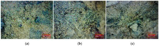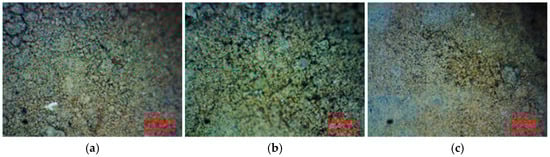 Morphology of undisturbed rammed earth sampling points (×60). (a) 0 cm; (b) −10 cm; (c) −20 cm.