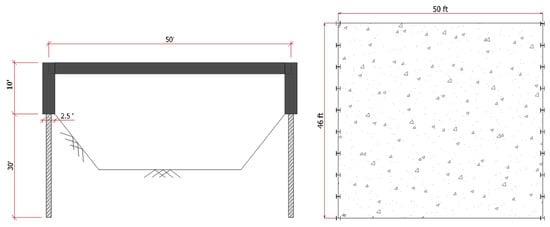 Bridge II is a solid slab bridge constructed entirely of reinforced concrete, with a span length of 50 ft (15.24 m) and width of 46 ft (14.02 m), as illustrated in Figure 3. The slab serves as both superstructure and deck and is 26.4 in (670 mm) thick. The substructure includes abutments supported by 10 steel HP piles. These abutments are 10 ft (3.05 m) high and 2.5 ft (0.76 m) thick and are also rigidly connected to the piles.