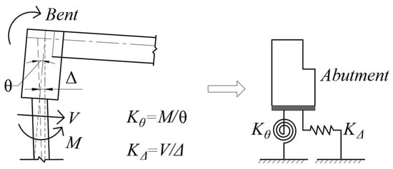 Figure 8 illustrates the spring model representations for the pile-abutment joint response obtained for each analysis set. The target rotational spring stiffnesses were determined by dividing the pile head moments by their corresponding rotations, while the target translational spring stiffnesses were calculated by dividing the pile head shear forces by the lateral displacements.