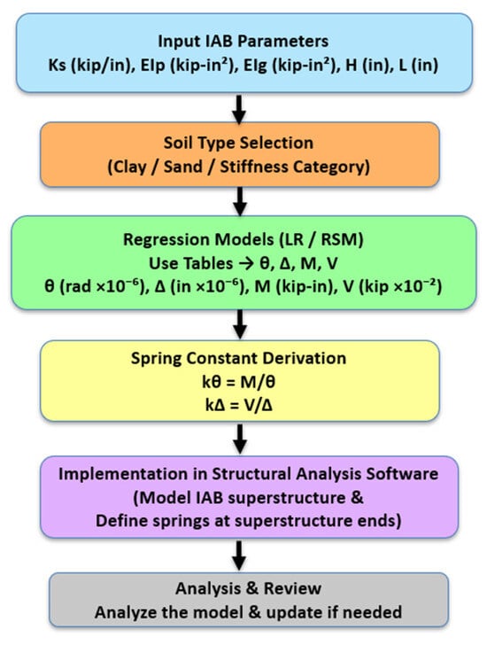 This study developed and validated predictive models to analyze and optimize the behavior of pile–abutment joints in short-span IABs. Using LR and RSM, practical and computationally efficient spring-based models were established to represent the nonlinear characteristics of pile–soil interaction. The proposed models provide viable alternatives to conventional FEM analyses, particularly for early-stage design and parametric studies. The principal findings of the study can be summarized as follows: