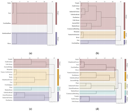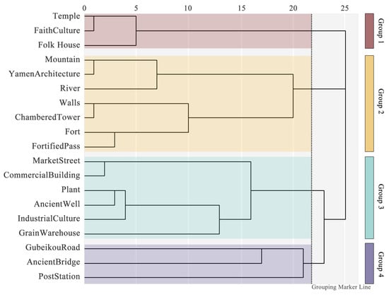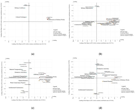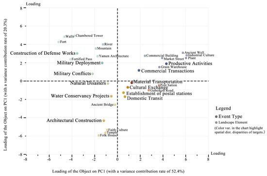 - Cluster 2 includes event types such as “Material Transportation”, “Cultural Exchange”, “Establishment of postal stations”, and “Domestic Transit”, with landscape elements being “Post Station” and “Gubeikou Road”. It is mainly influenced by the regional transportation function;