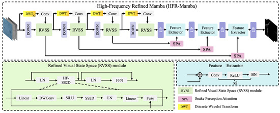 Pipeline of the High-Frequency Refined Mamba (HFR-Mamba).