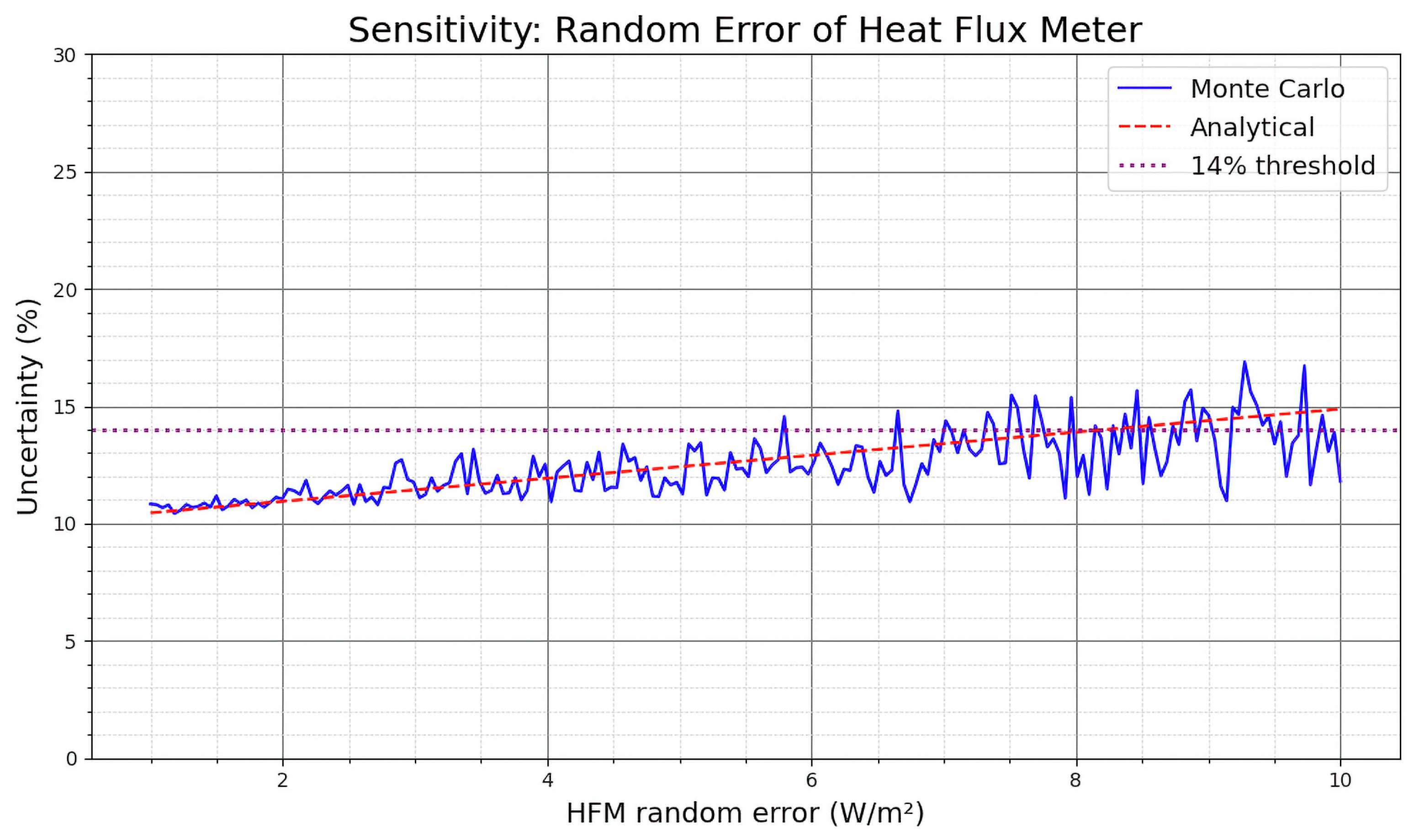 - Noise of the heat flux meter (4.0 W/m2): As the noise of the temperature sensors, this value was calculated based on the same experimental data and procedure.
