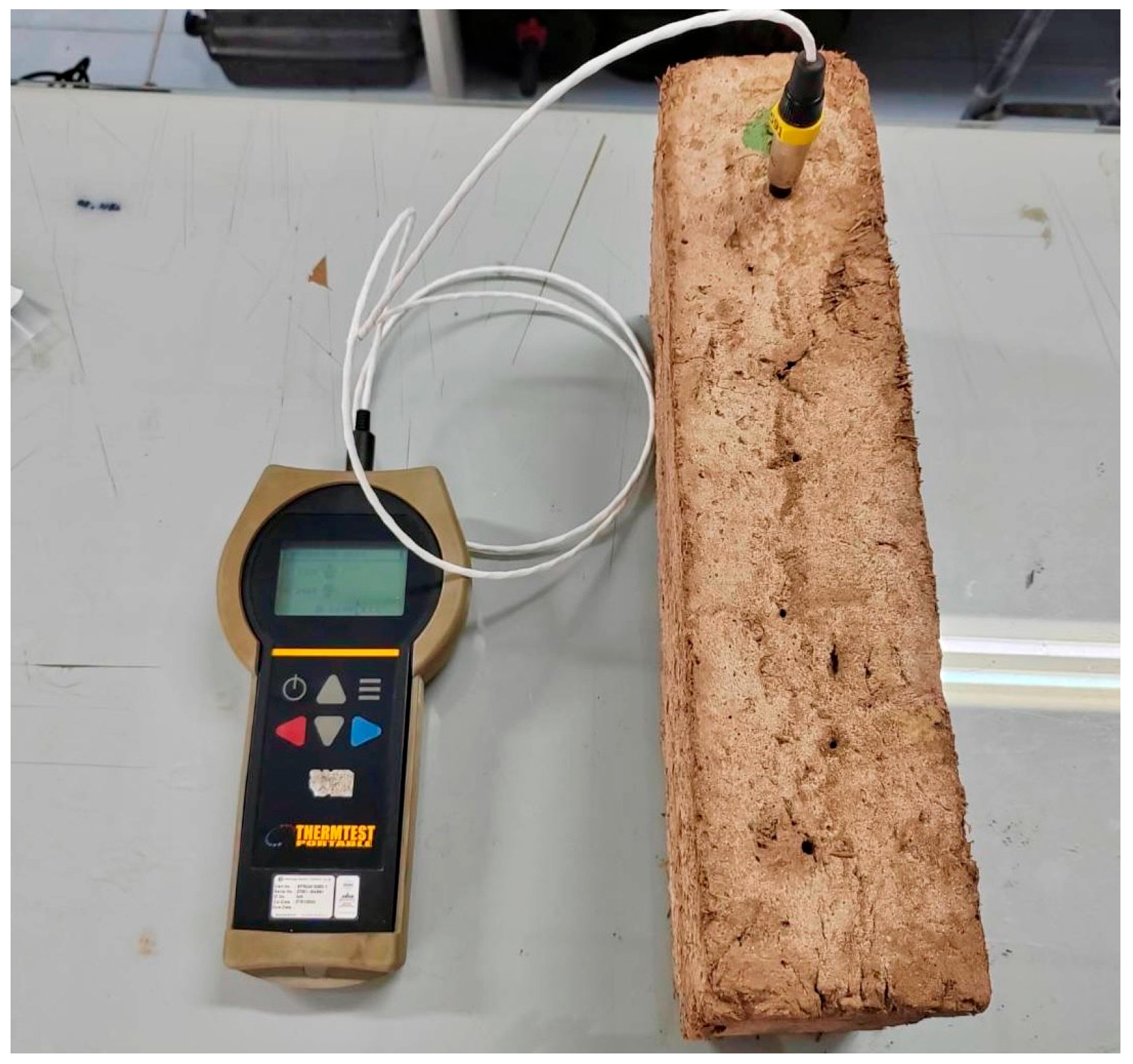 Figure 10). Uttaradit soil achieved the highest mechanical properties among all tested materials, with compressive strength of 1.71 ± 0.07 MPa and flexural strength of 0.35 ± 0.04 MPa. However, this superior mechanical performance corresponded with the highest thermal conductivity of 0.428 ± 0.006 W/m·K.