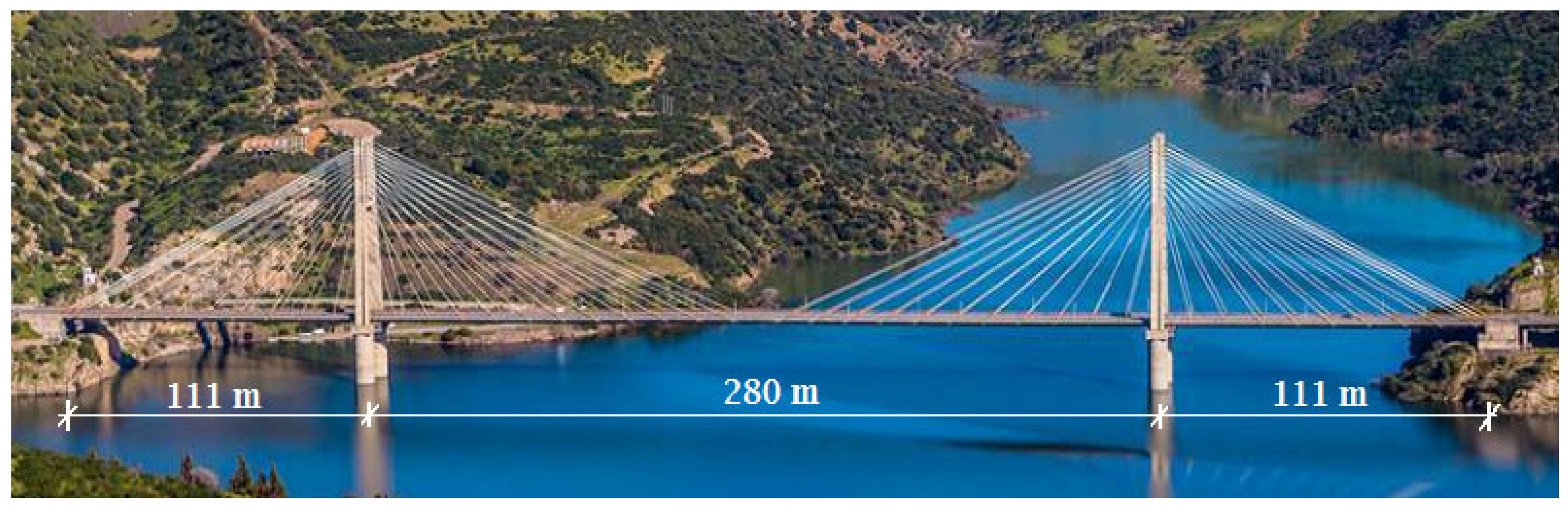 - Lefaucheur, D.; Bouchon, E. Conception des Ponts à Haubans, Un Savoir Faire Français; Cerema: Bron, France, 2016. [Google Scholar]