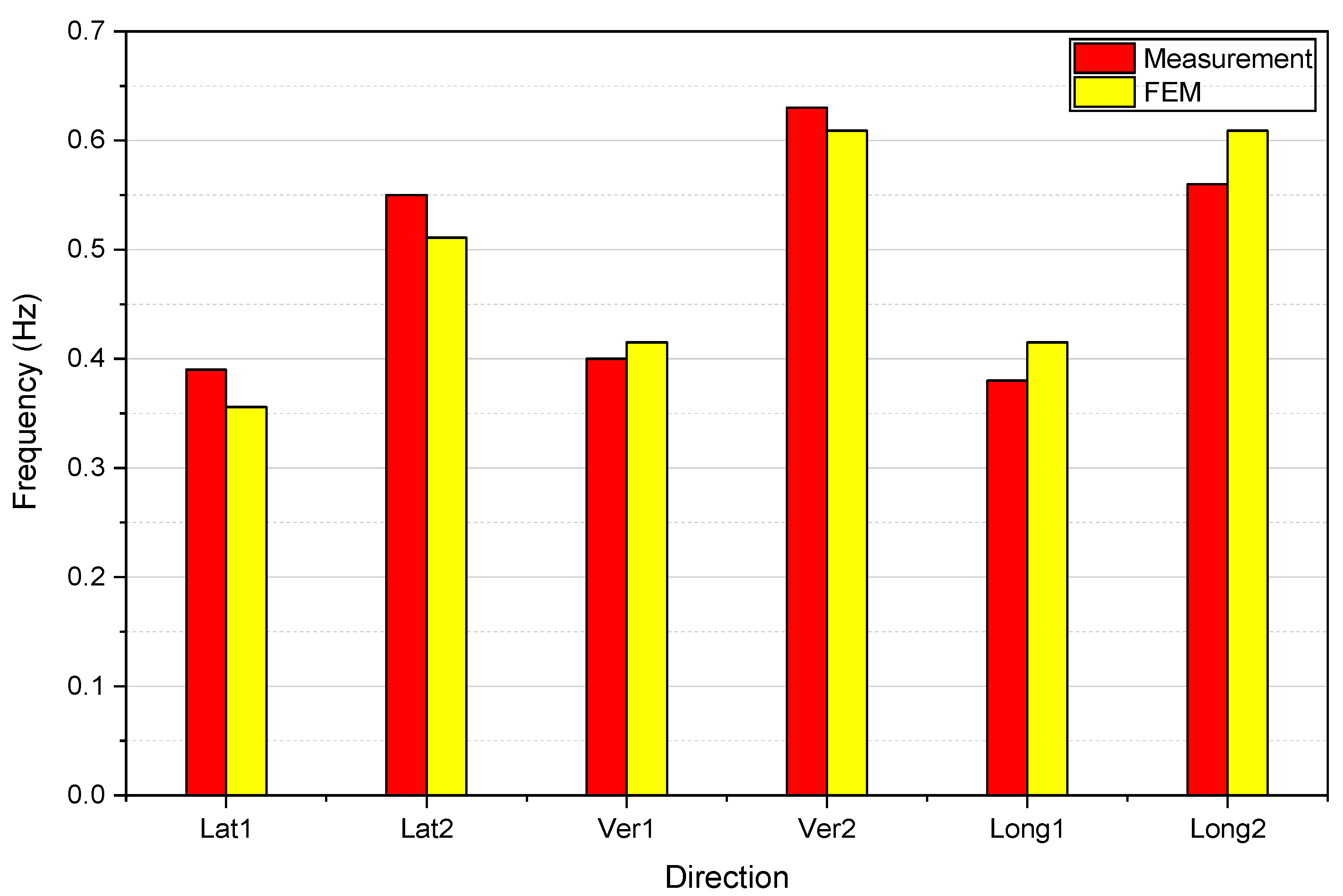 Direction | Measurement (Hz) | FE Model (Hz) | Error (%) |