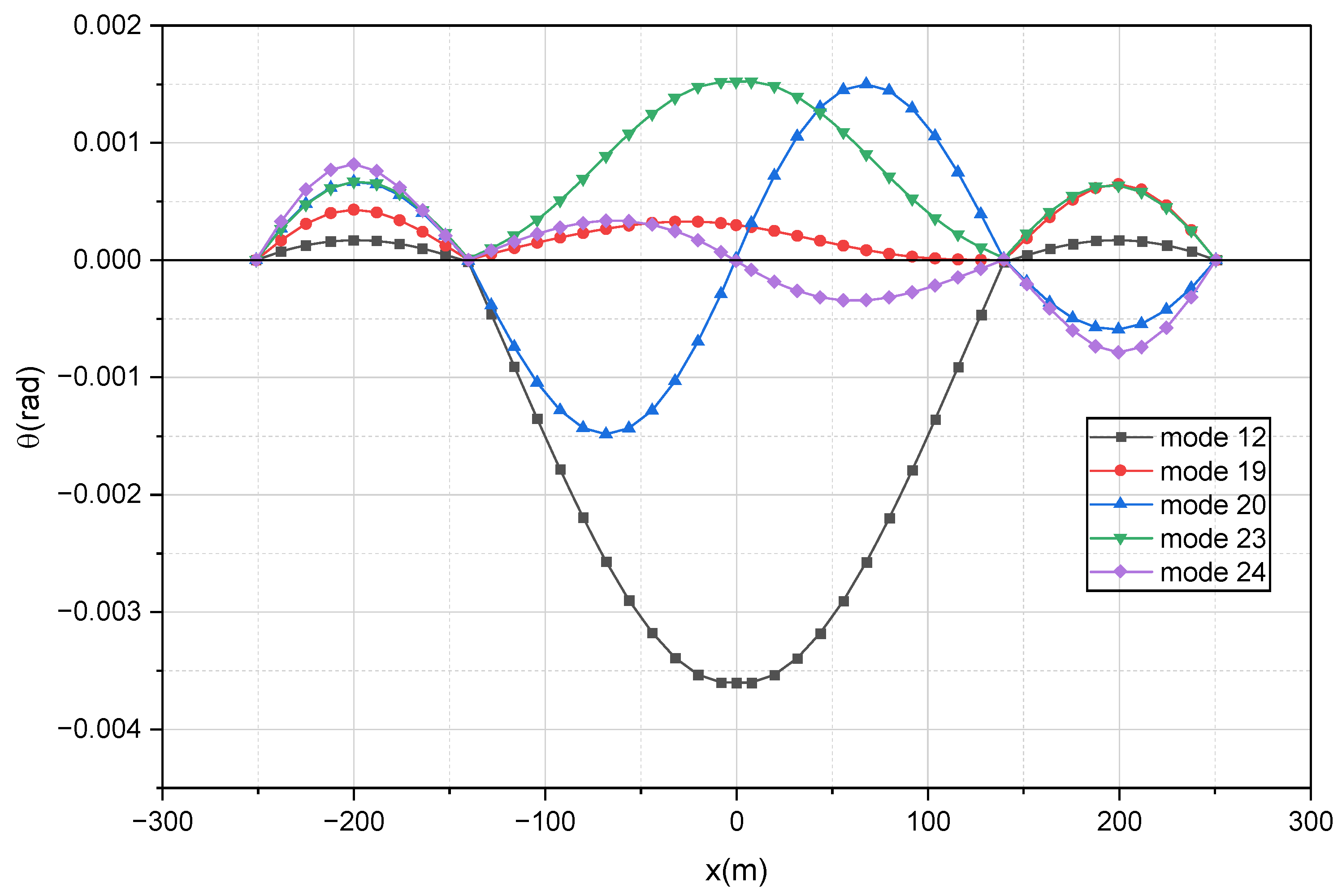 - Wang, Z.; Zhu, J.; Zeng, J.; Zhang, Z. Wind-induced asymmetry torsional divergence of long-span bridges: Mechanism, three-dimensional and turbulence effects. Int. J. Struct. Stab. Dyn. 2023, 23, 2350042. [Google Scholar] [CrossRef]