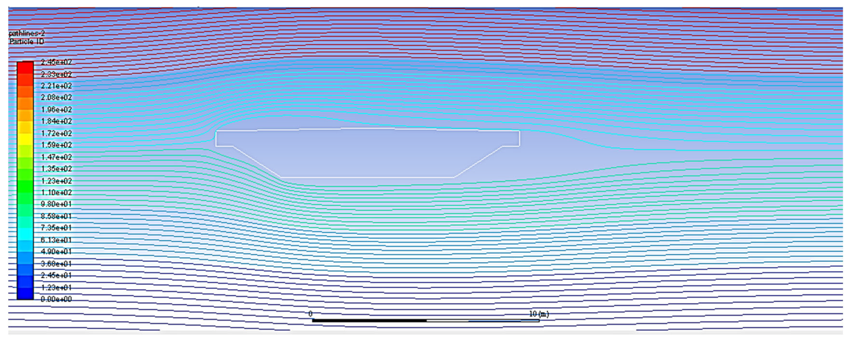 - CFD analysis highlighted flow separation, vortex initiation, and backflow regions around the bluff deck section, confirming its susceptibility to vortex-induced phenomena.