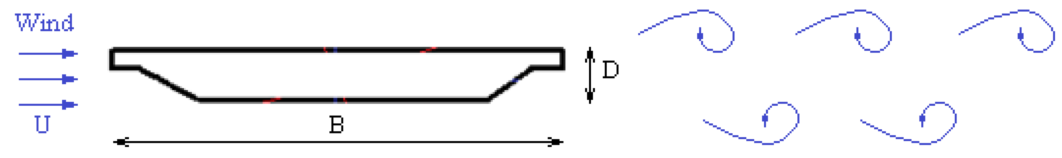 - Scanlan, R.H.; Beliveau, J.G.; Budlong, K.S. Indicial Aerodynamic Functions for Bridge Decks. J. Eng. Mech. Div. 1974, 100, 657–672. [Google Scholar] [CrossRef]
