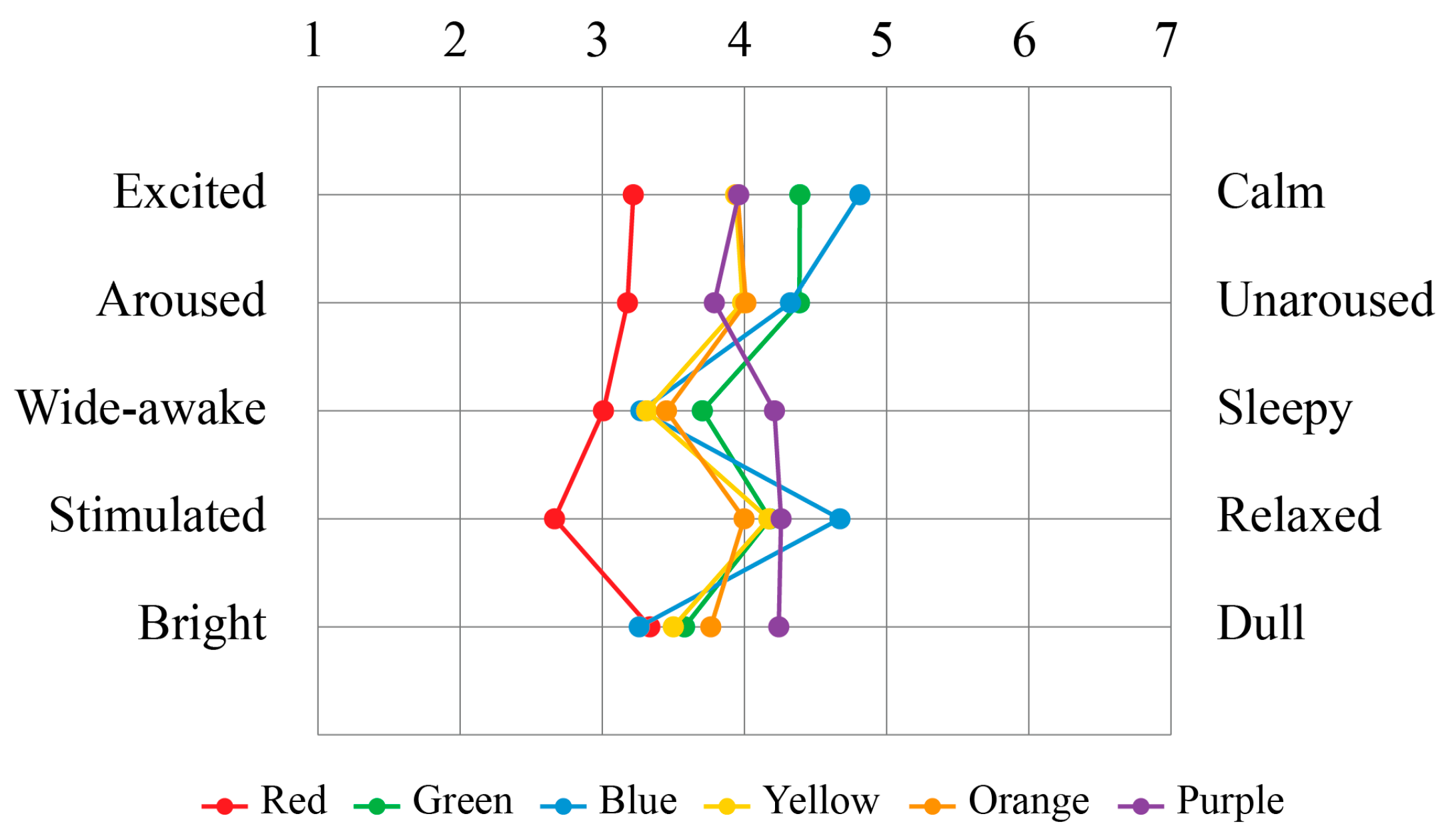 25] demonstrated through galvanic skin response and electrocardiography that red light produces the strongest arousal, followed by blue and green. Liu et al. [