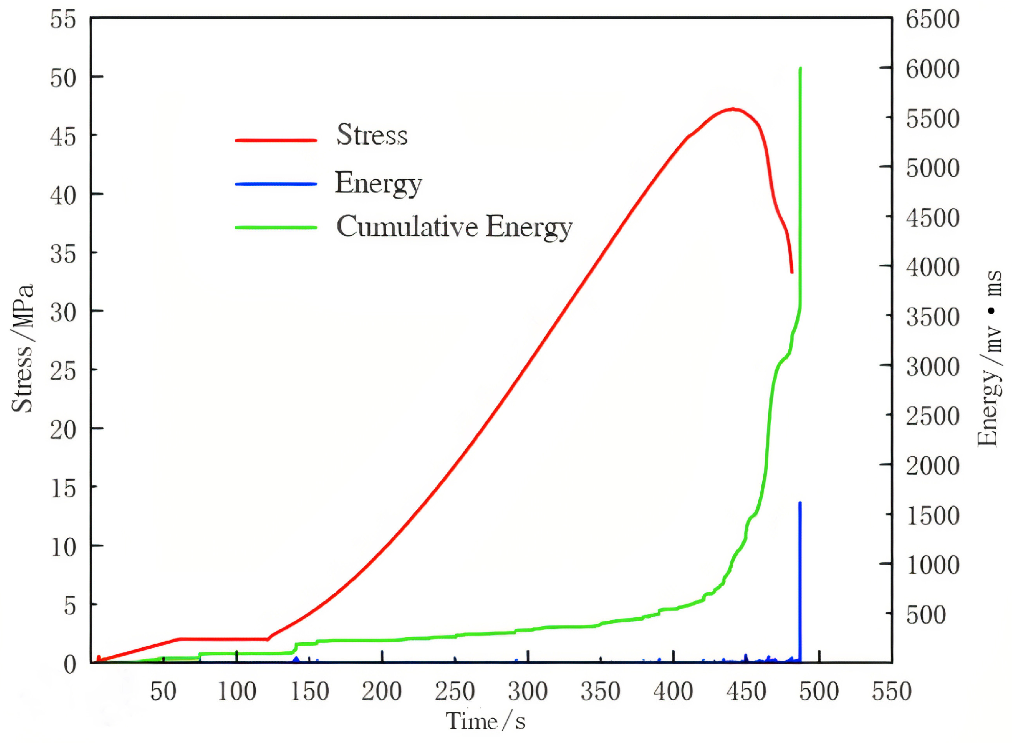Figure 6, its uniaxial compressive failure process exhibited significantly different modes of damage accumulation and failure compared to the room-temperature specimen. In the initial loading stage (120 s,