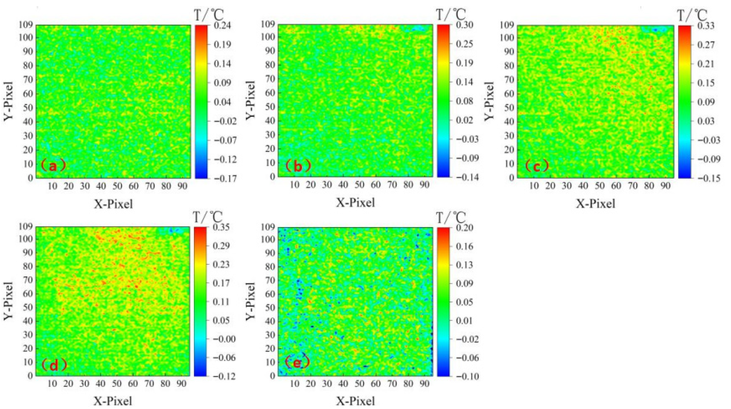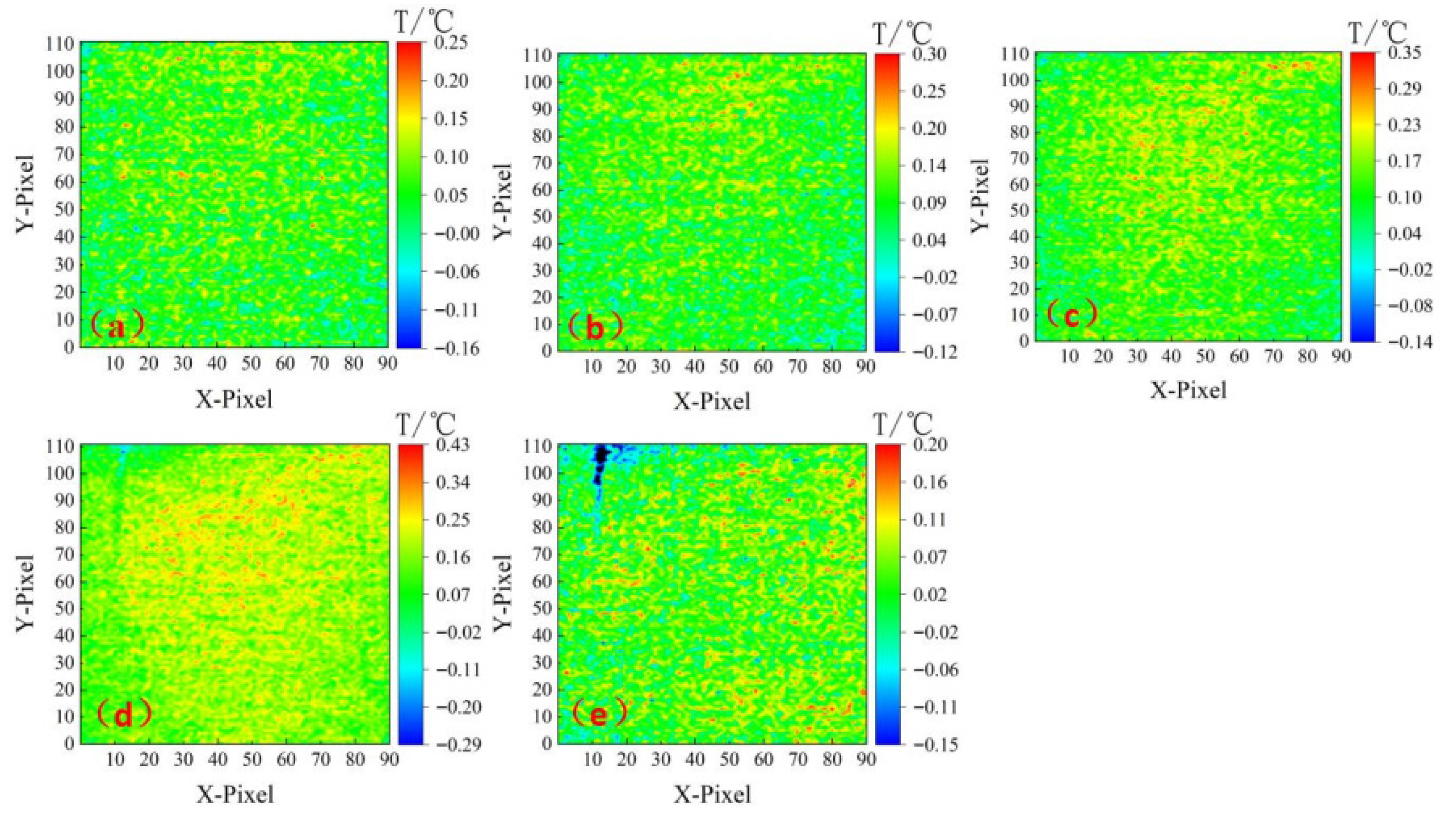 The thermal infrared test results of the specimens under the normal-temperature condition are shown in