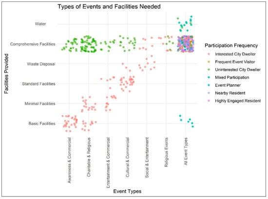Scatterplot between types of events and facilities.