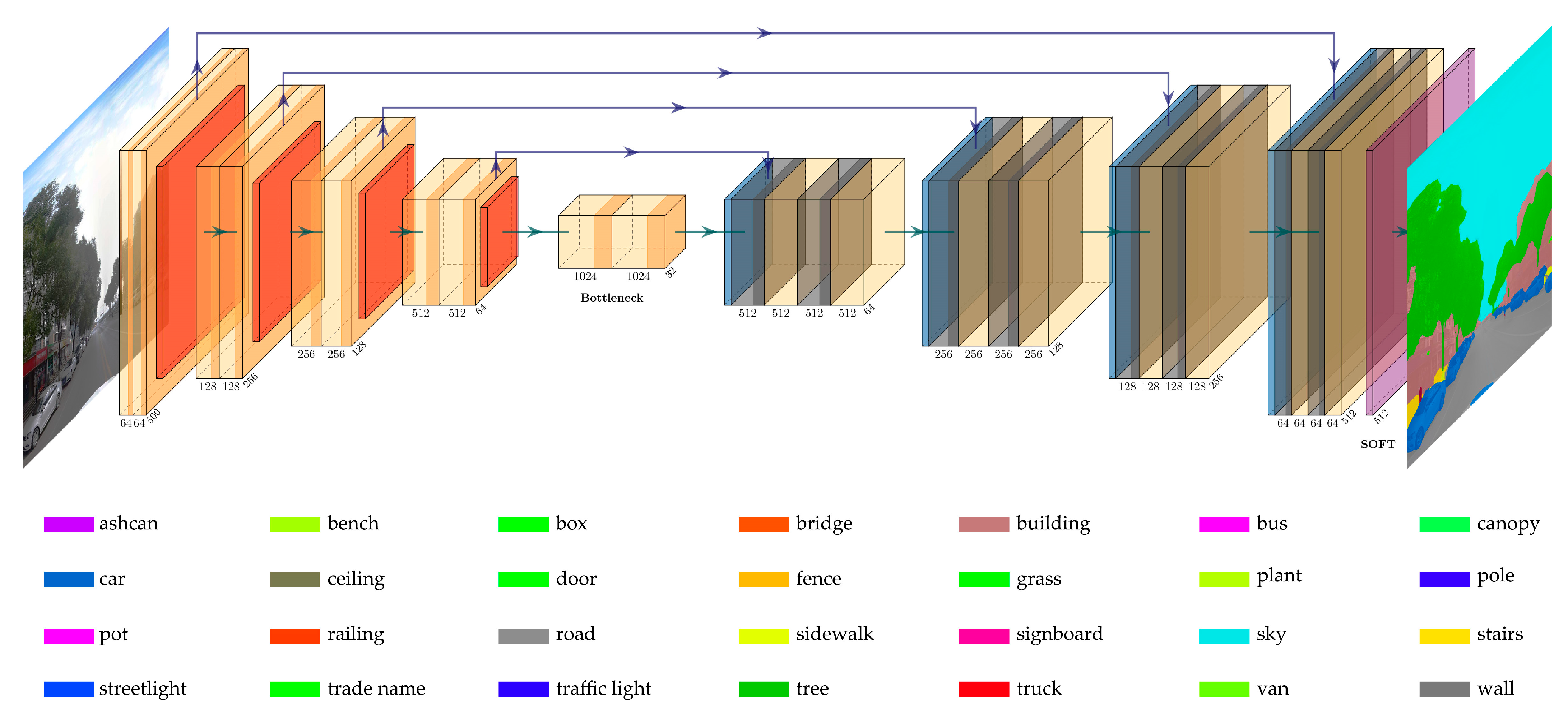 - Cordts, M.; Omran, M.; Ramos, S.; Rehfeld, T.; Enzweiler, M.; Benenson, R.; Franke, U.; Roth, S.; Schiele, B. The cityscapes dataset for semantic urban scene understanding. In Proceedings of the 2016 IEEE Conference on Computer Vision and Pattern Recognition (CVPR), Las Vegas, NV, USA, 27–30 June 2016; pp. 3213–3223. [Google Scholar]