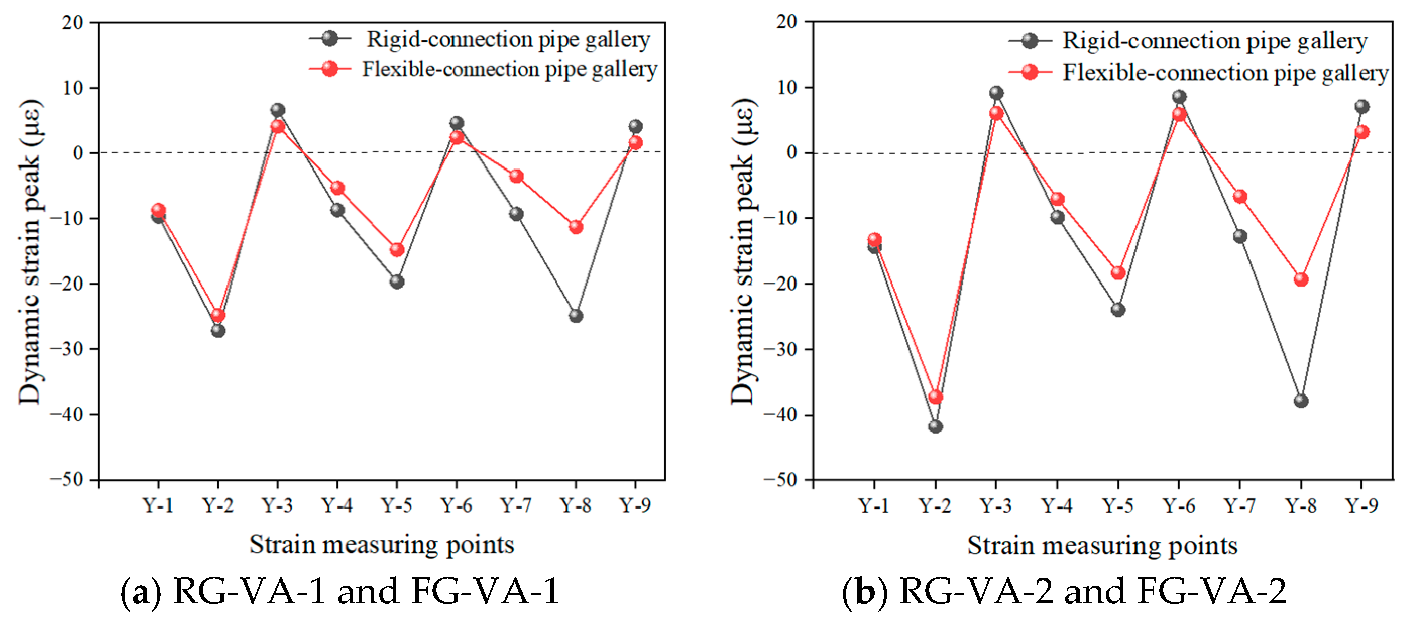 4.2. Response Analysis of Pipe Gallery Under Dynamic Compaction