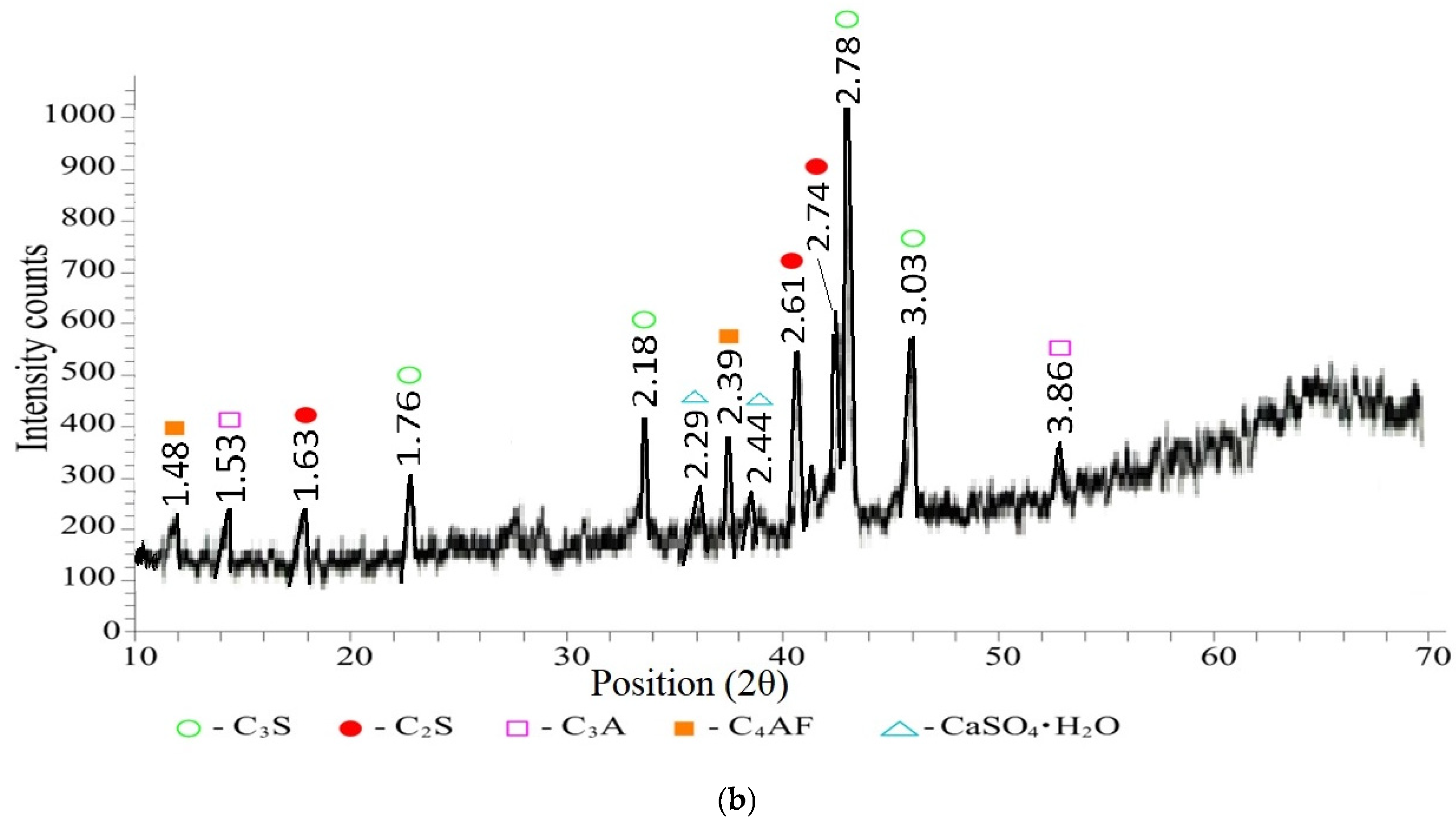 - alite (C3S—3CaO·SiO2) d/n—3.0432; 2.9836; 2.7818; 1.9816; 1.8242; 1.7665; 1.5412 Å;
