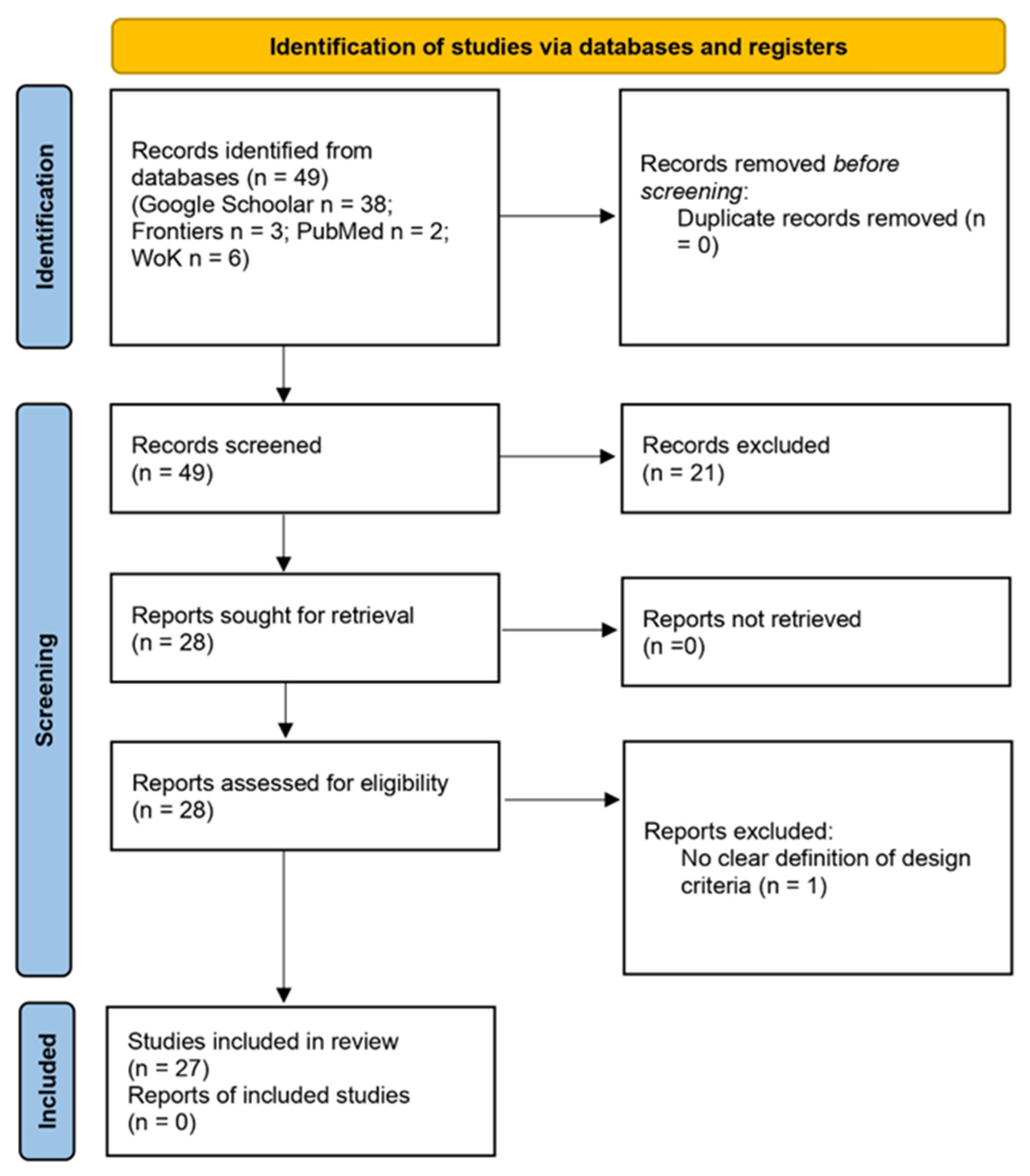 - Llorens-Gámez, M.; Higuera Trujillo, J.L.; Sentieri Omarrementeria, C.; Llinares, C. The Impact of the Design of Learning Spaces on Attention and Memory from a Neuroarchitectural Approach: A Systematic Review. Front. Archit. Res. 2022, 11, 542–560. [Google Scholar] [CrossRef]