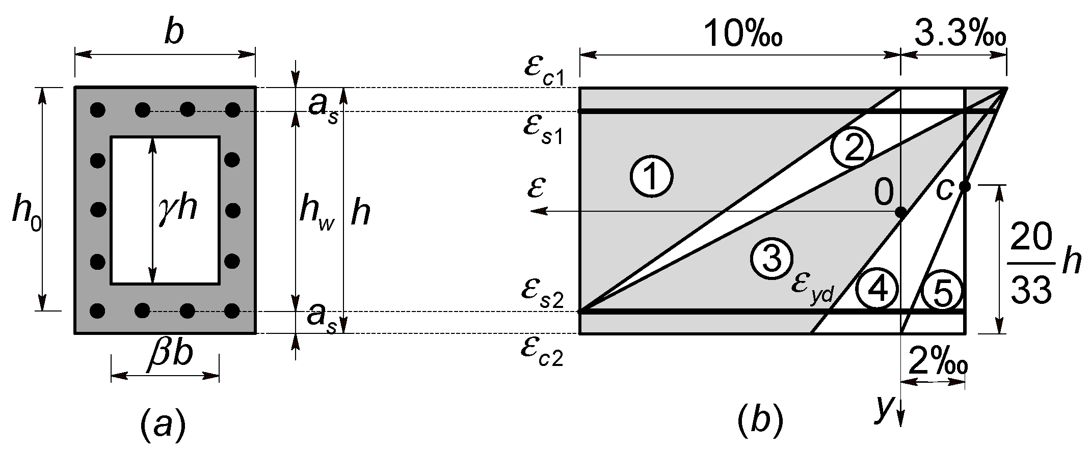 - Zhou, D.H.; Wang, Q.F.; Fan, J.; Gao, Q.X.; Wang, H.Y. A new method for the calculation of reinforcement of concrete: General dimensionless designing diagram. Eng. Mech. 2010, 27, 162–172. [Google Scholar]