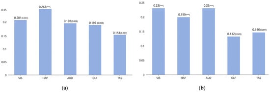 The study’s framework draws on Krishna and Schwarz’s (2014) [68] sensory marketing theory. The theory posits that humans exchange information with their environment primarily through five senses (vision, haptics, audition, olfaction, and taste), which serve as external trigger variables. When external stimuli engage these senses, they elicit perceptual responses, leading to grounded emotion and grounded cognition. These processes ultimately generate individuals’ attitudes and behaviors toward a product [68].