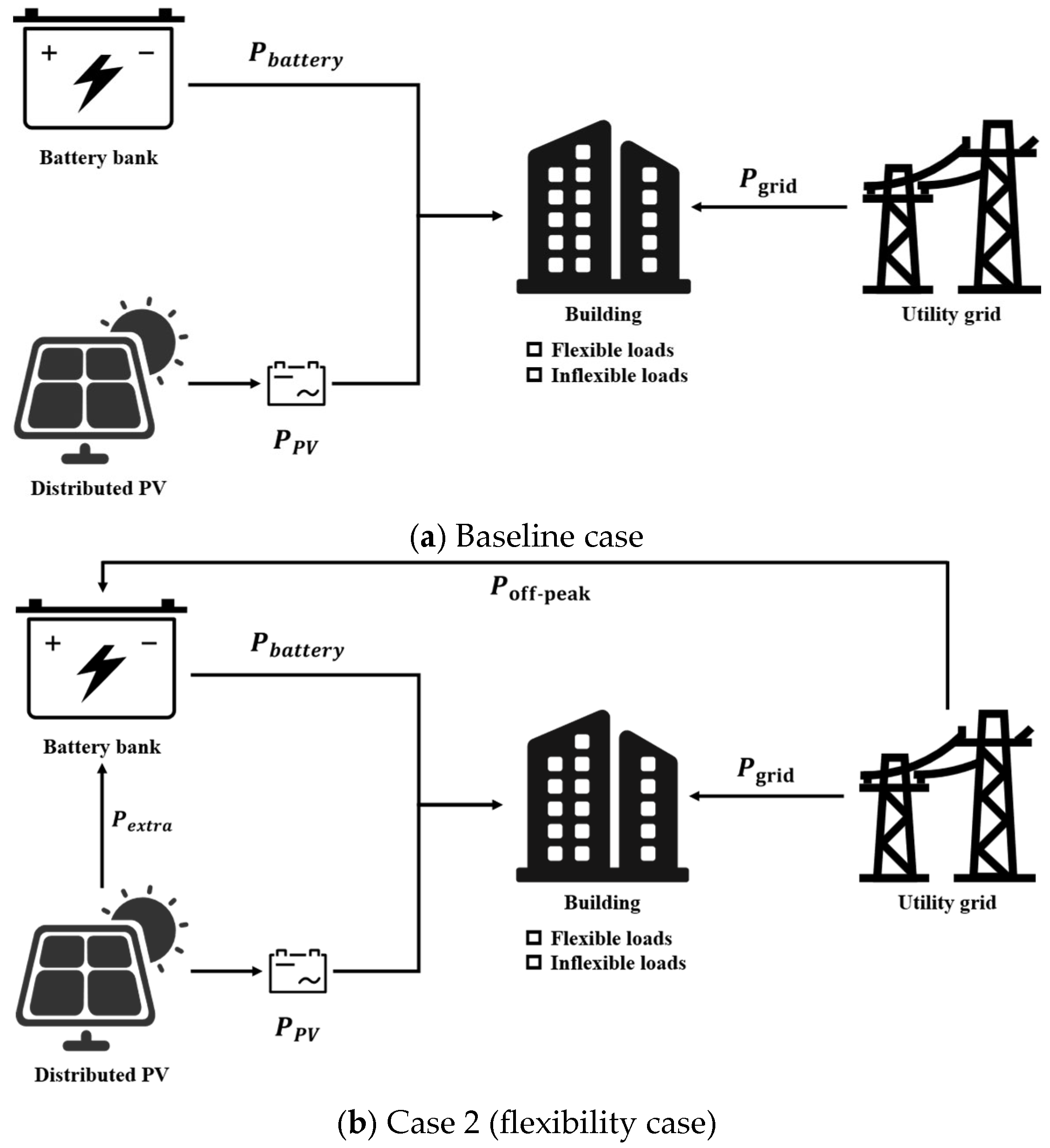 - Li, Y.; Peng, J.; Jia, H.; Zou, B.; Hao, B.; Ma, T.; Wang, X. Optimal Battery Schedule for Grid-Connected Photovoltaic-Battery Systems of Office Buildings Based on a Dynamic Programming Algorithm. J. Energy Storage 2022, 50, 104557. [Google Scholar] [CrossRef]