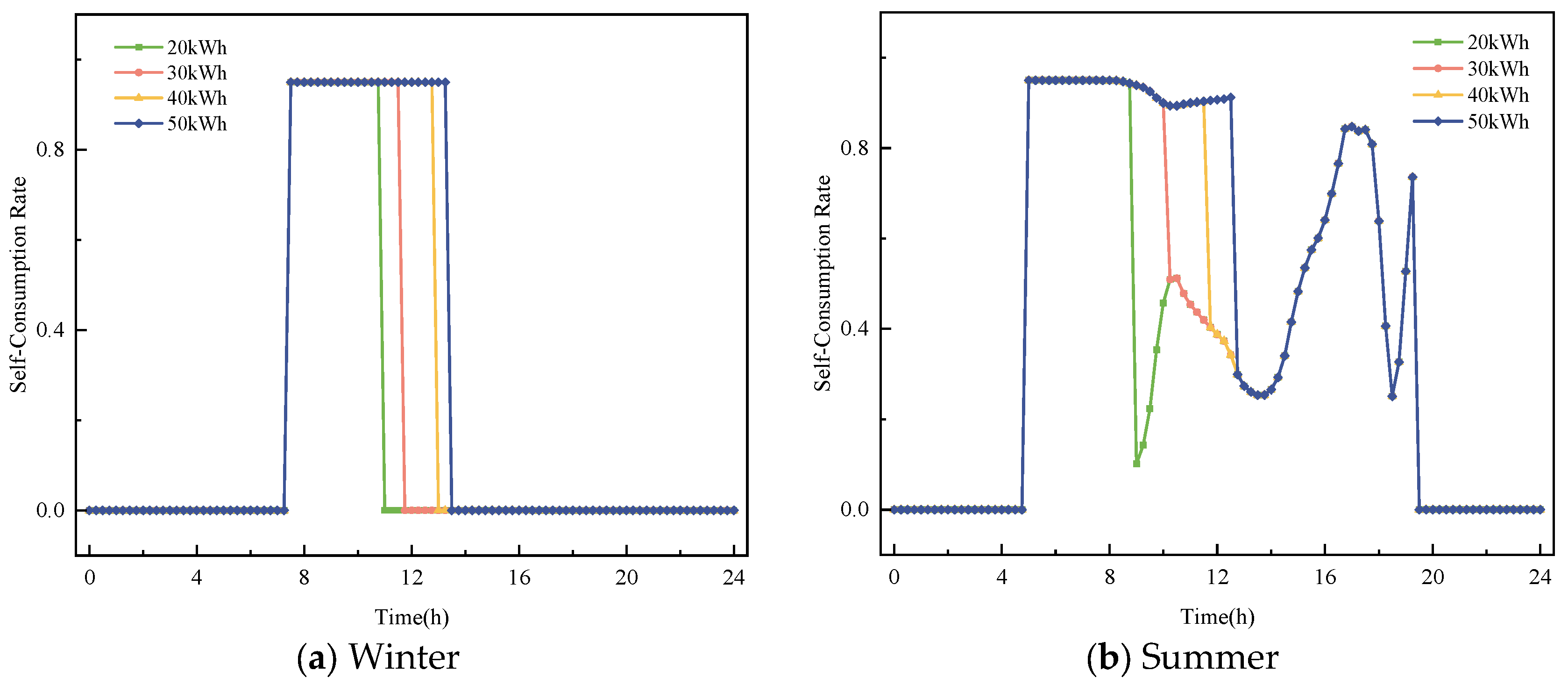 4.1.2. The Impact of Energy Storage Capacity on Photovoltaic Utilization