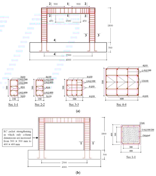 Earthquakes are among the most destructive natural hazards, consistently posing serious threats to human life and built infrastructure. A significant proportion of earthquake-related casualties and economic losses result from the severe damage or collapse of structures. As the service life of existing structures increases, their performance deteriorates due to material degradation, gradually rendering them noncompliant with current seismic design standards. Therefore, to ensure the continued usability and safety of structures after long-term service, seismic retrofitting has become essential. Professionals and researchers have been compelled to develop innovative procedures and methods to upgrade these structures and protect them from the destructive effects of dynamic loading [1,2,3,4]. To ensure sufficient seismic performance of existing buildings during earthquakes, past studies have investigated various strengthening methods [5,6,7,8]. Three widely adopted retrofitting techniques are reinforced concrete (RC), steel, and fiber-reinforced polymer jacketing [9,10,11,12].