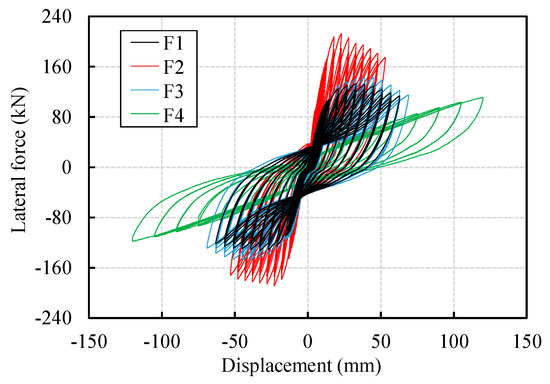 3.2. Load–Displacement Hysteretic Results