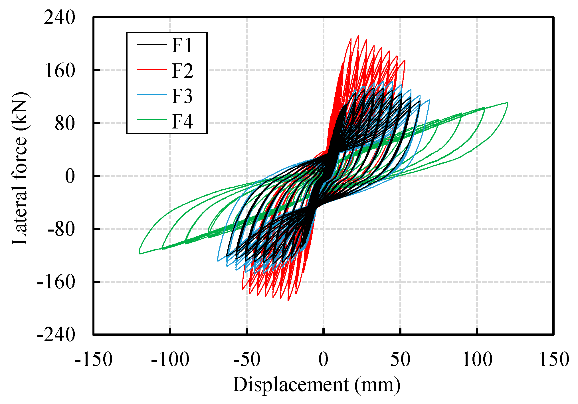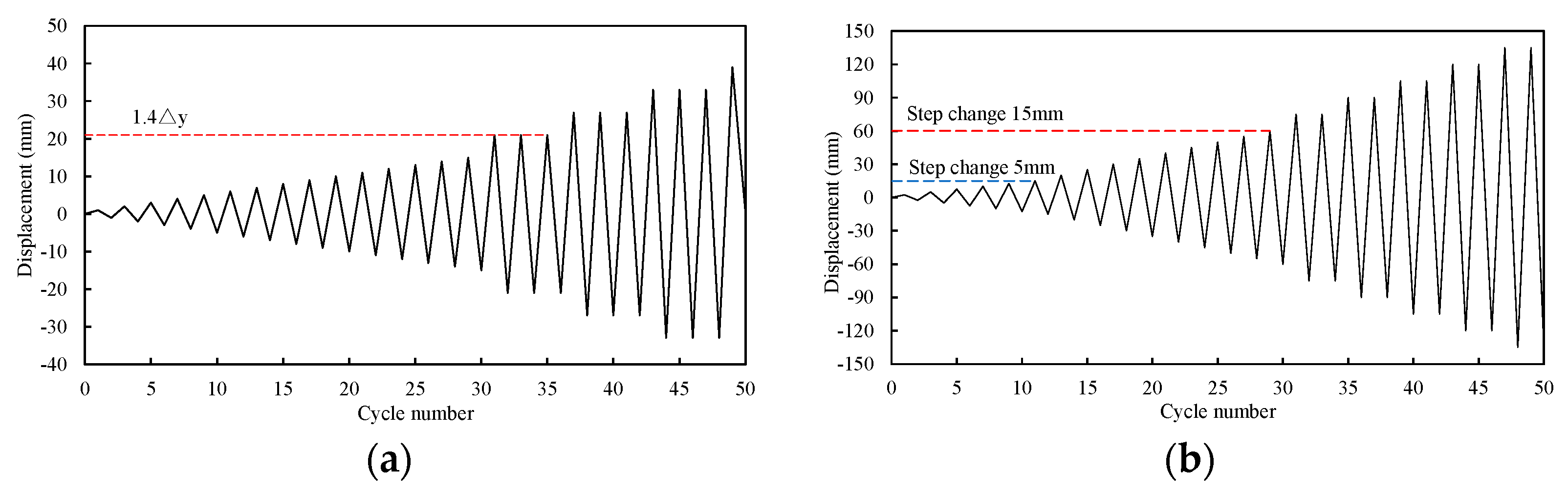 - Zhang, C.; Wu, L.; Elchalakani, M.; Cai, J. Cyclic Loading Test for Reinforced Concrete Columns Strengthened with High-Strength Engineered Cementitious Composite Jacket. Eng. Struct. 2023, 278, 115571. [Google Scholar] [CrossRef]
