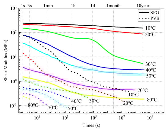 Variation Curves of Shear Modulus of SGP and PVB with Respect to Time and Temperature.