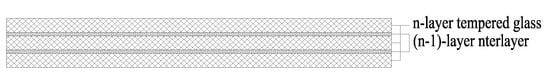 where ,, are the thicknesses of each single glass panel, respectively; is the number of layers of the laminated glass.