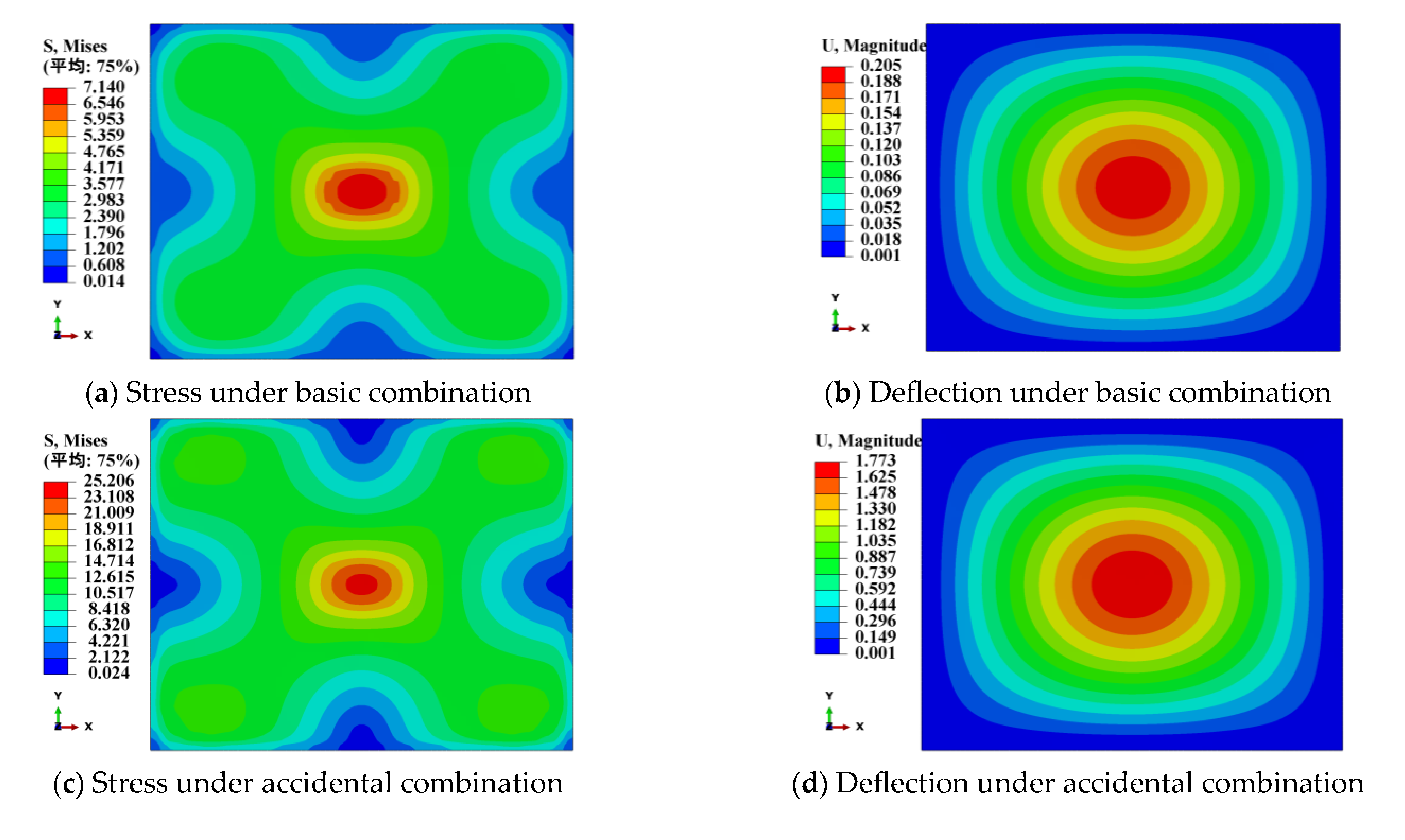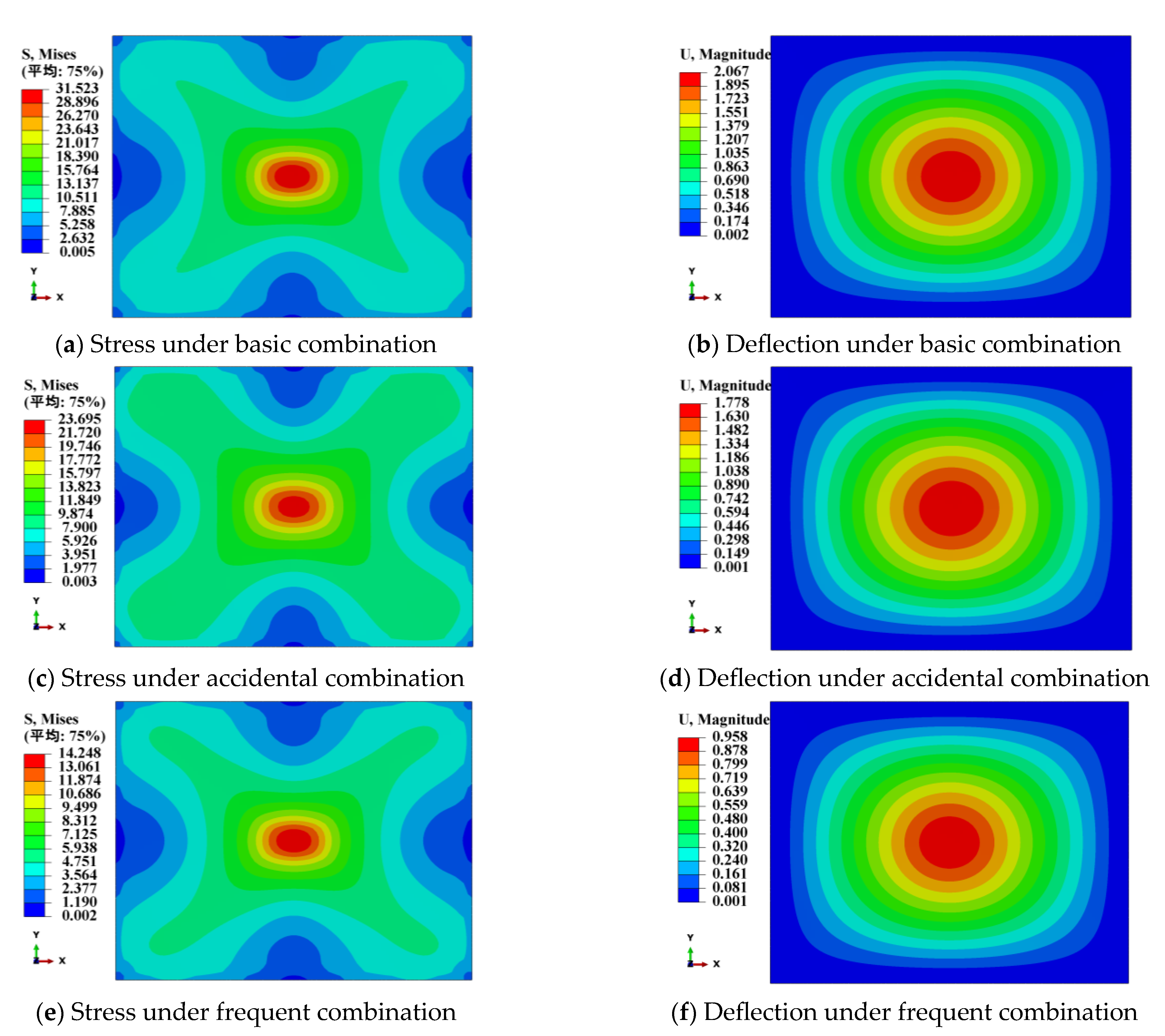 Table 4 shows the calculation results of stress and deflection of SGP laminated glass under different load combinations.